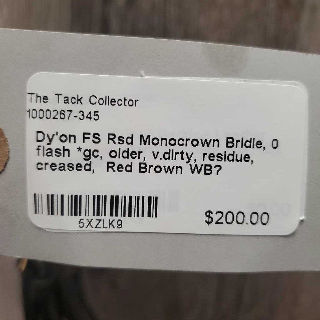 FS Rsd Monocrown Bridle, 0 flash *gc, older, v.dirty, residue, creased