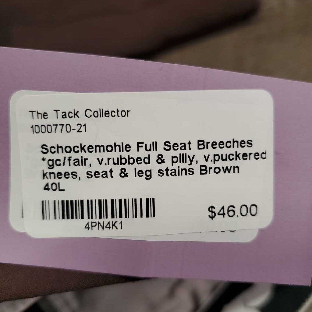 Full Seat Breeches *gc/fair, v.rubbed & pilly, v.puckered knees, seat & leg stains
