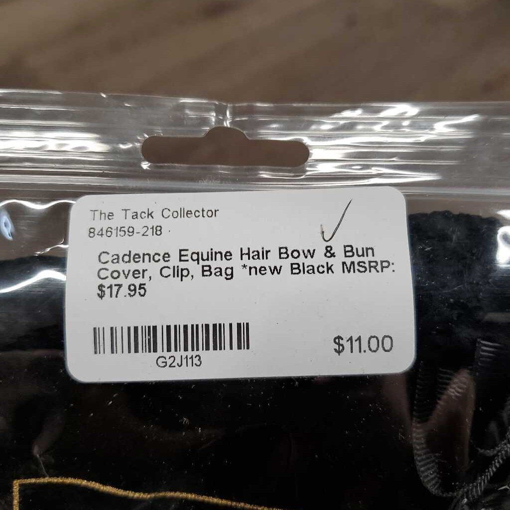 Cadence Equine's Equestrian Bow and Bun Cover: the perfect blend of elegance and functionality for riders who demand both style and practicality. Available in timeless black and navy variations. Ultra-Stretchy Crochet Net: Crafted with a durable elastic cord, our bun cover features an ultra-stretchy crochet net, accommodating long, thick hair effortlessly. Ideal for All Lengths of Hair: Whether you have mid-length hair or long, thick locks, our knot-free hair net is perfect for all lengths of hair, neatly holding it out of the way for a polished and professional look. Luxurious Velvet Pouch: Each bun cover comes with a soft, luxurious velvet pouch, providing a safe and dust-free storage solution for your tack box. Easy to Use: Engineered for ease, our bun cover effortlessly slips into your hair, ensuring a hassle-free styling experience. Durable Clip Design: Featuring a durable clip design, our bun cover stays securely in place throughout your ride. Upgrade your equestrian sty...
