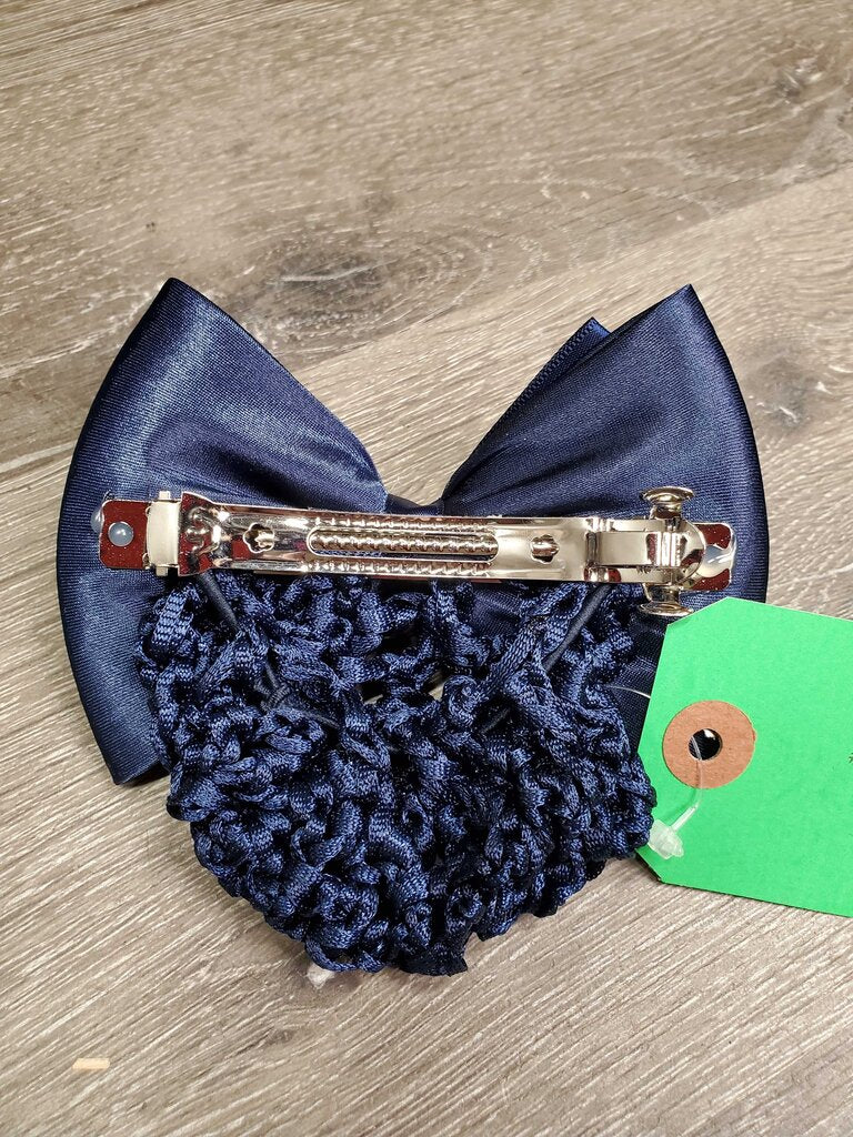 Cadence Equine's Equestrian Bun Cover: the perfect blend of elegance and functionality for riders who demand both style and practicality. Available in timeless black and navy. Delicate Glass Stone Embellishments: Delicately adorned with glass stones, our bun cover enhances your hairstyle with a touch of understated sparkle. Ultra-Stretchy Crochet Net: Crafted with a durable elastic cord, our bun cover features an ultra-stretchy crochet net, accommodating long, thick hair effortlessly. Say goodbye to hair hassles and hello to a flawless bun every time. Luxurious Velvet Pouch: Each bun cover comes with a soft, luxurious velvet pouch, providing a safe and dust-free storage solution for your tack box. Easy to Use: Engineered for ease, our bun cover effortlessly slips into your hair, ensuring a hassle-free styling experience. Durable Clip Design: Featuring a durable clip design, our bun cover stays securely in place throughout your ride.