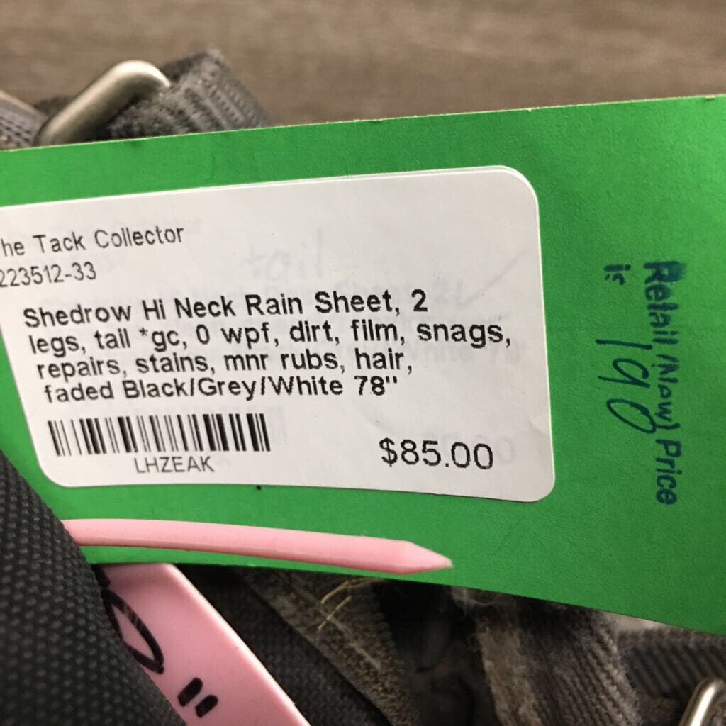 Hi Neck Rain Sheet, 2 legs, tail *gc, 0 wpf, dirt, film, snags, repairs, stains, mnr rubs, hair, faded