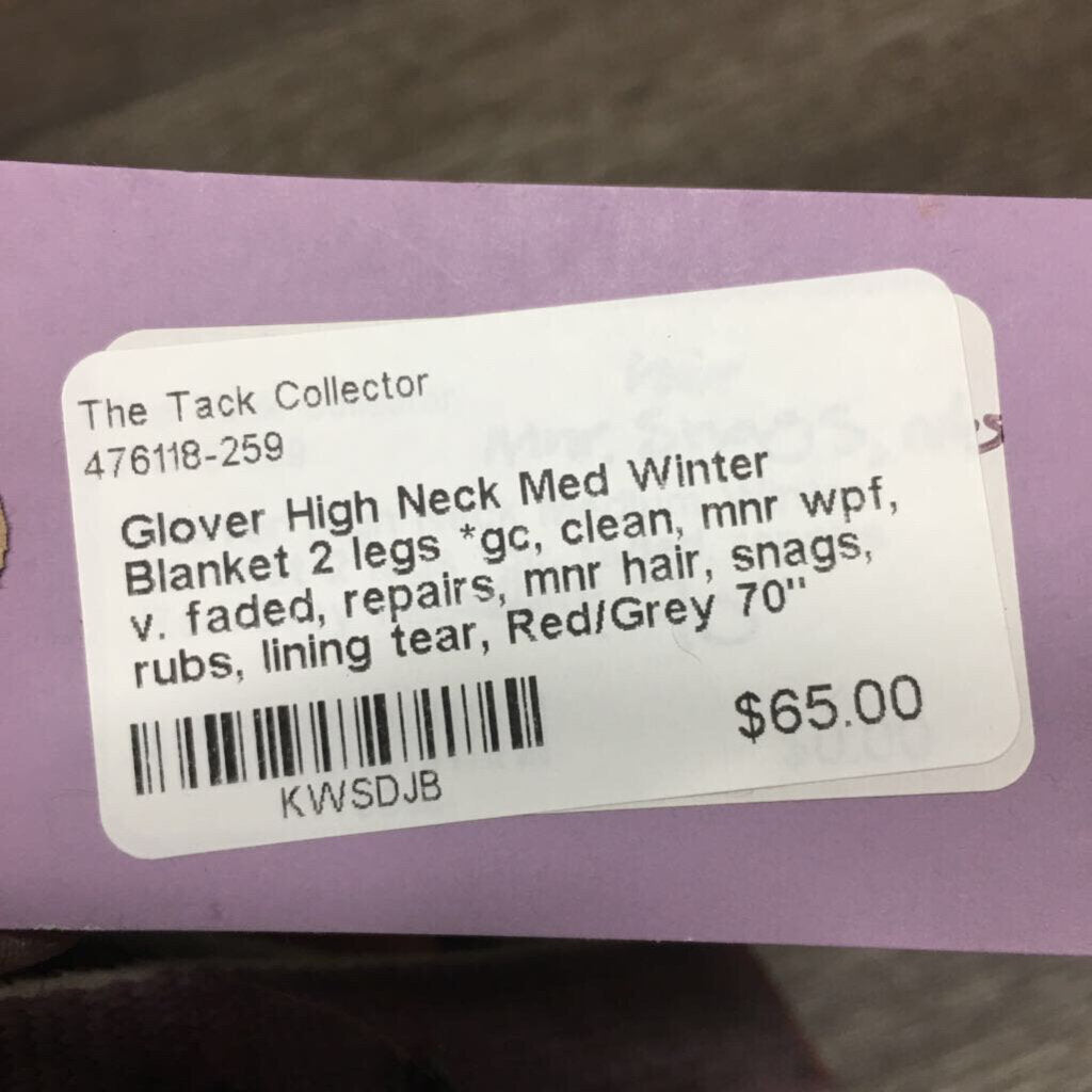 High Neck Med Winter Blanket 2 legs *gc, clean, mnr wpf, v. faded, repairs, mnr hair, snags, rubs, lining tear