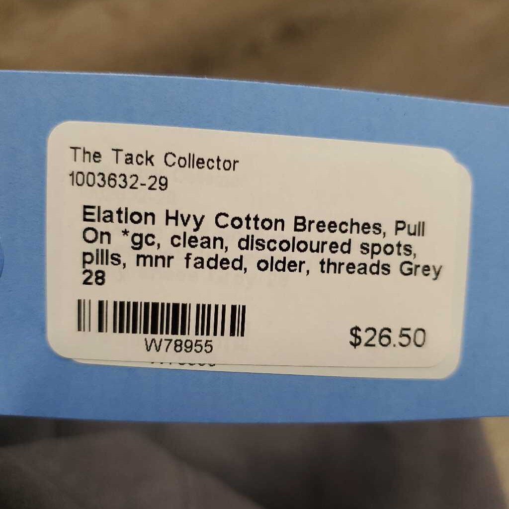 Hvy Cotton Breeches, Pull On *gc, clean, discoloured spots, pills, mnr faded, older, threads