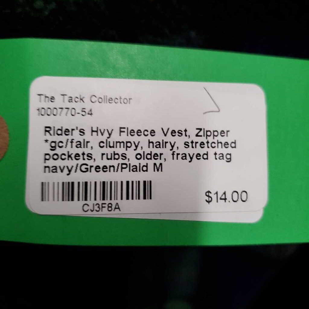 Hvy Fleece Vest, Zipper *gc/fair, clumpy, hairy, stretched pockets, rubs, older, frayed tag