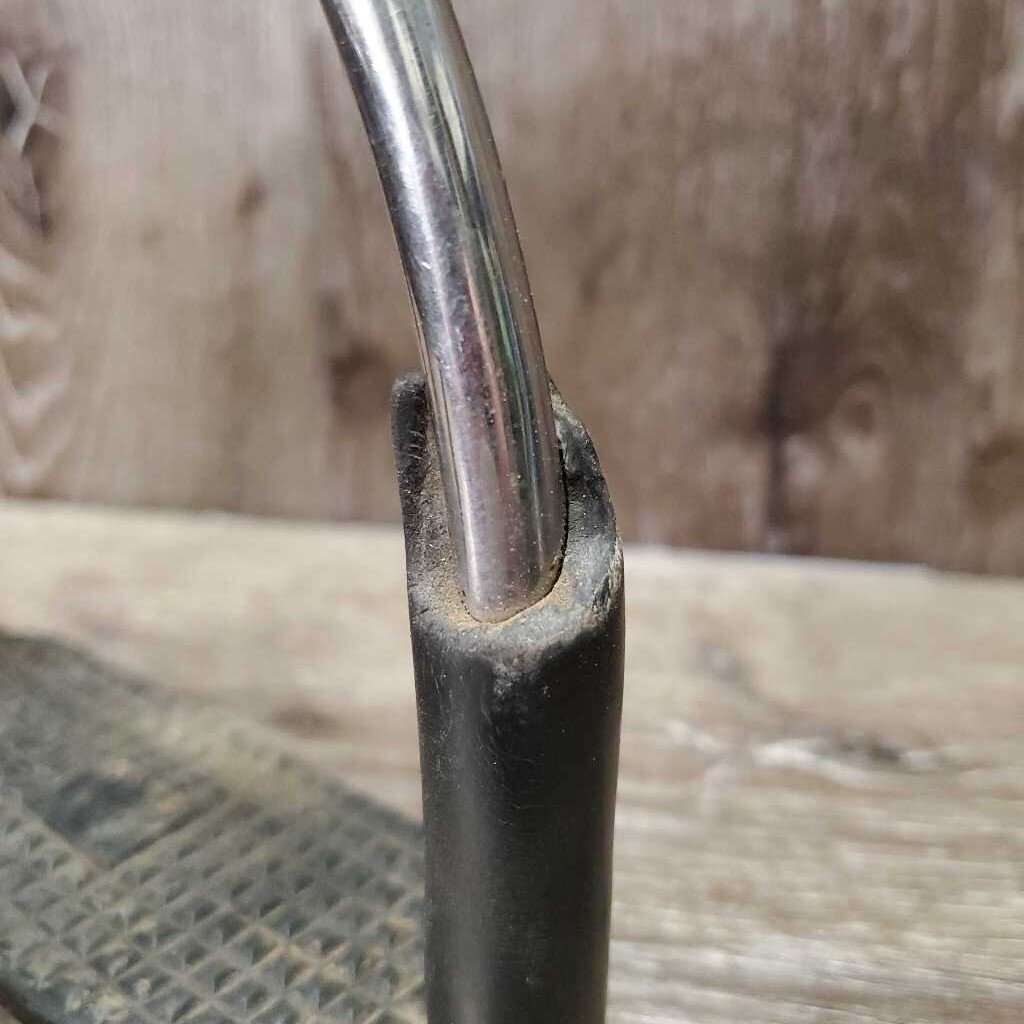 Hvy Flexi Stirrup Irons, grips *gc/fair, squeaky, torn rubber, clean & mnr dirt/residue, scratches, stains