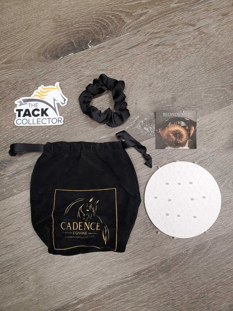 Cadence Equine's Invisible Hair Net: the perfect solution for equestrians seeking a polished, sophisticated look without the fuss. Crafted with strong and durable polyester netting, this innovative hair accessory features integrated pearl-like beads, providing a touch of elegance while maintaining a discreet "invisible" appearance when worn. Classy and Understated: Designed for riders who prefer a refined aesthetic, our Invisible Hair Net offers a subtle yet stylish way to keep your hair in place. Seamless Integration: The pearl-like beads are seamlessly integrated into the netting, creating a flawless look that blends seamlessly with your hair. Perfect Pairing Options: Team the Invisible Hair Net with one of our scrunchies for a complete and coordinated look. Easy to Use: Our Invisible Hair Net is easy to use - just secure in place like your would a typical 'ballet-bun' with u-pins. Luxurious Velvet Pouch: Stunning pouch to safely store your invisible hair net.