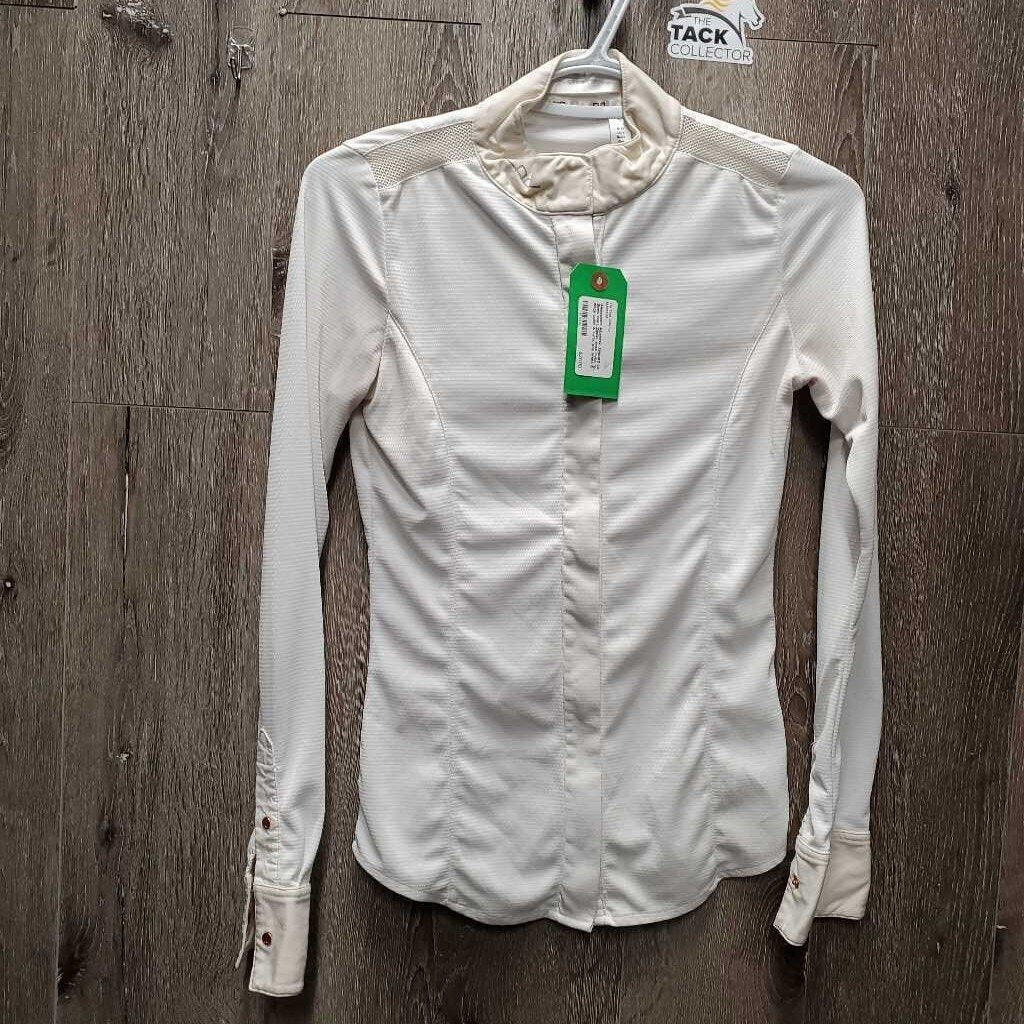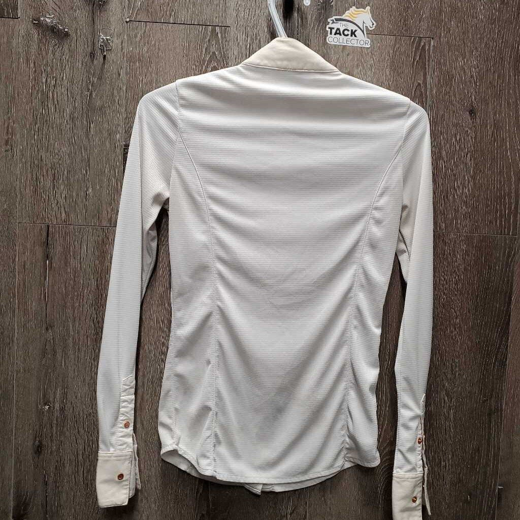JUNIORS LS Show Shirt, Zipper, snap collar *gc, dingy collar & cuffs, pits