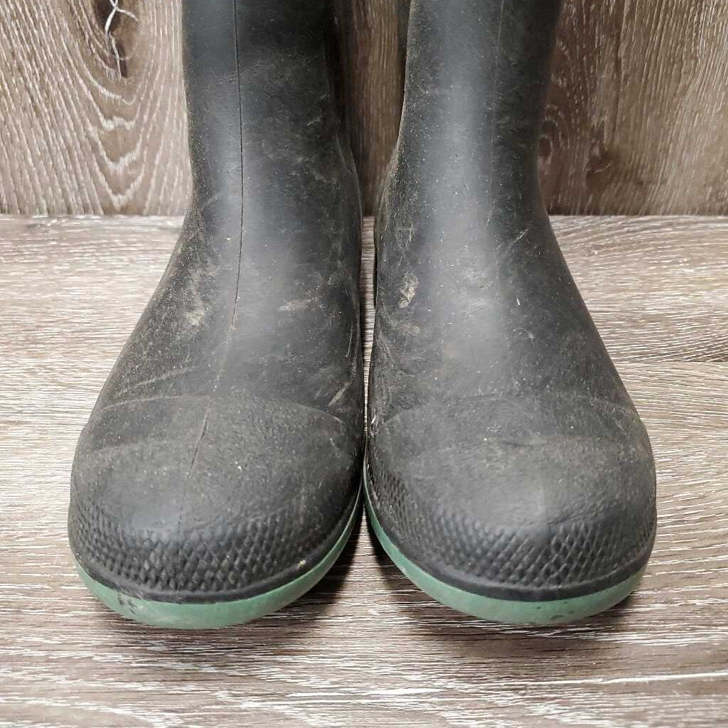 JUNIORS Soft Mid Height Rubber Boots *gc/fair, dirt, stains, scuffs, holey inner heels, v.rubbed heels & toes