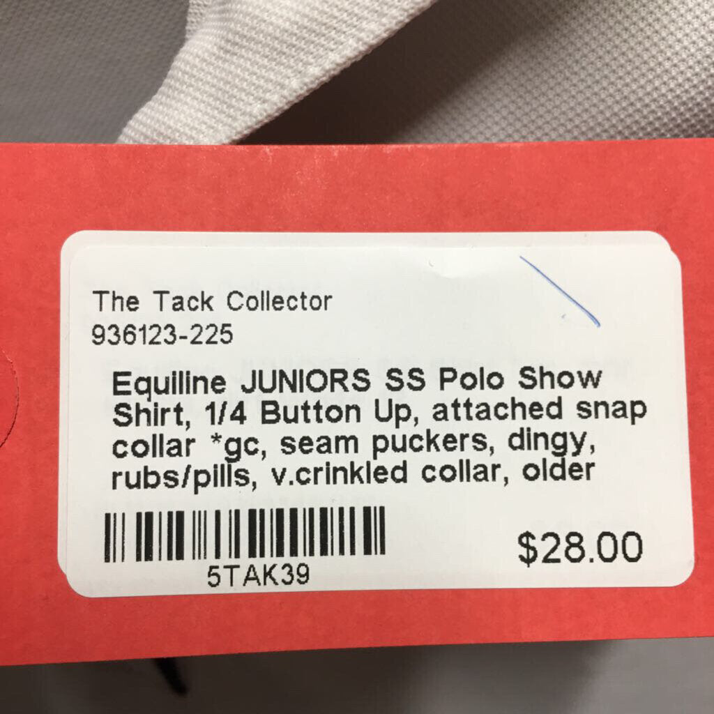JUNIORS SS Polo Show Shirt, 1/4 Button Up, attached snap collar *gc, seam puckers, dingy, rubs/pills, v.crinkled collar, older