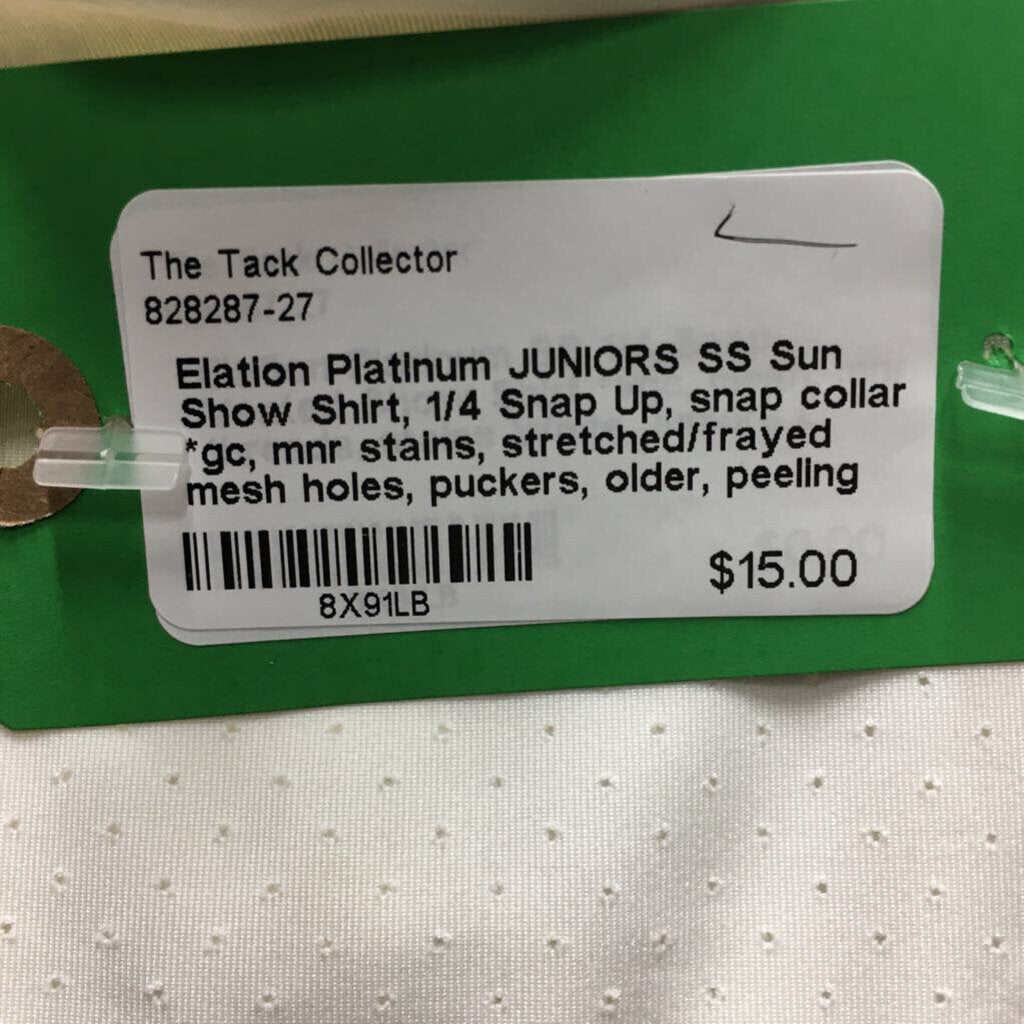 JUNIORS SS Sun Show Shirt, 1/4 Snap Up, snap collar *gc, mnr stains, stretched/frayed mesh holes, puckers, older, peeling logo, dingy?