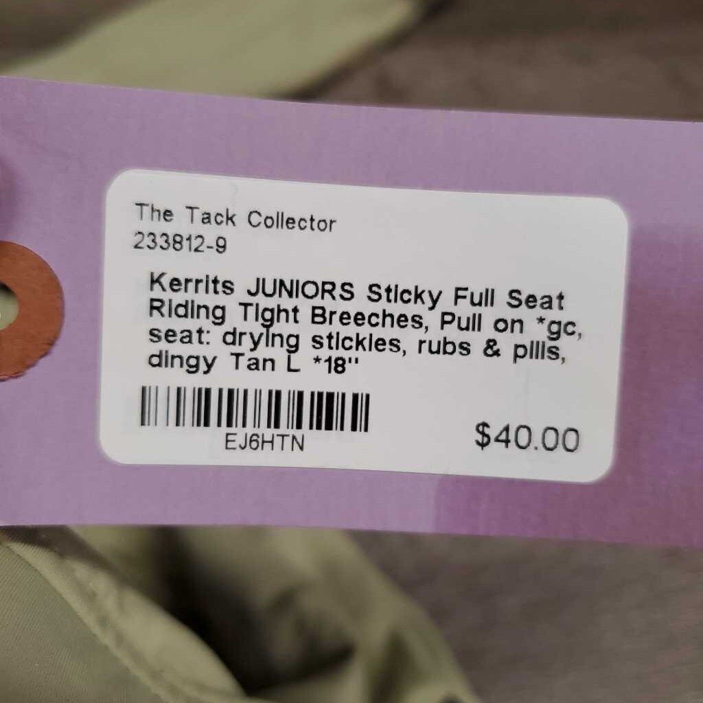 JUNIORS Sticky Full Seat Riding Tight Breeches, Pull on *gc, seat: drying stickies, rubs & pills, dingy