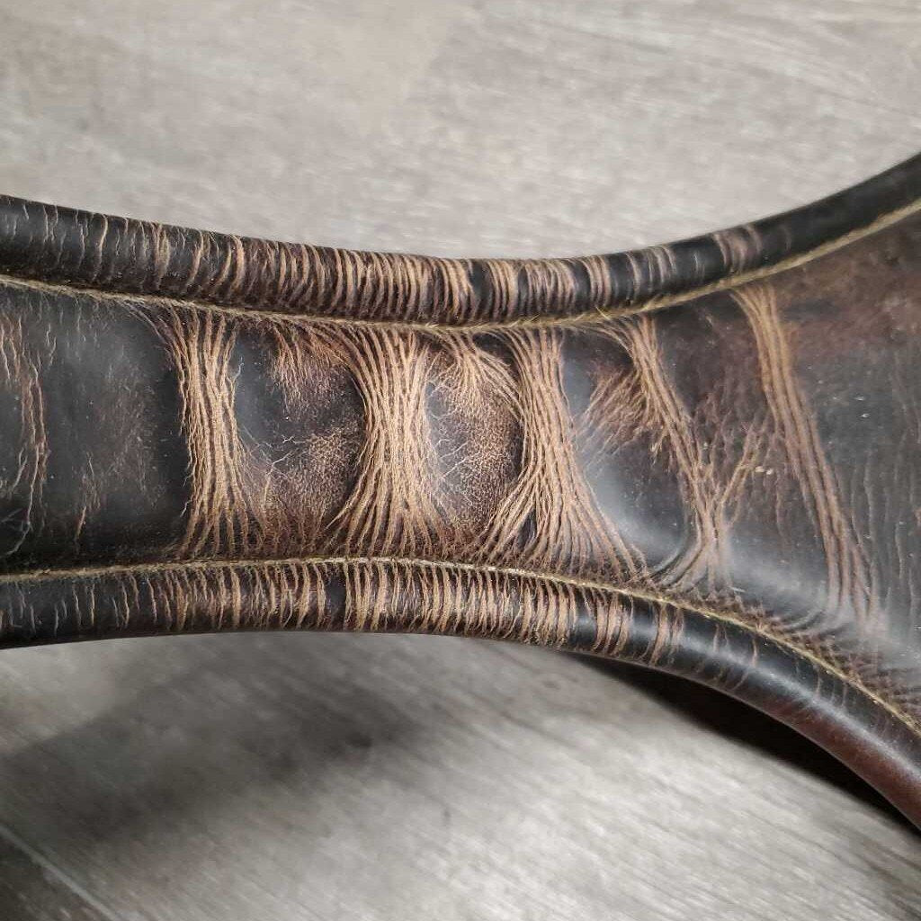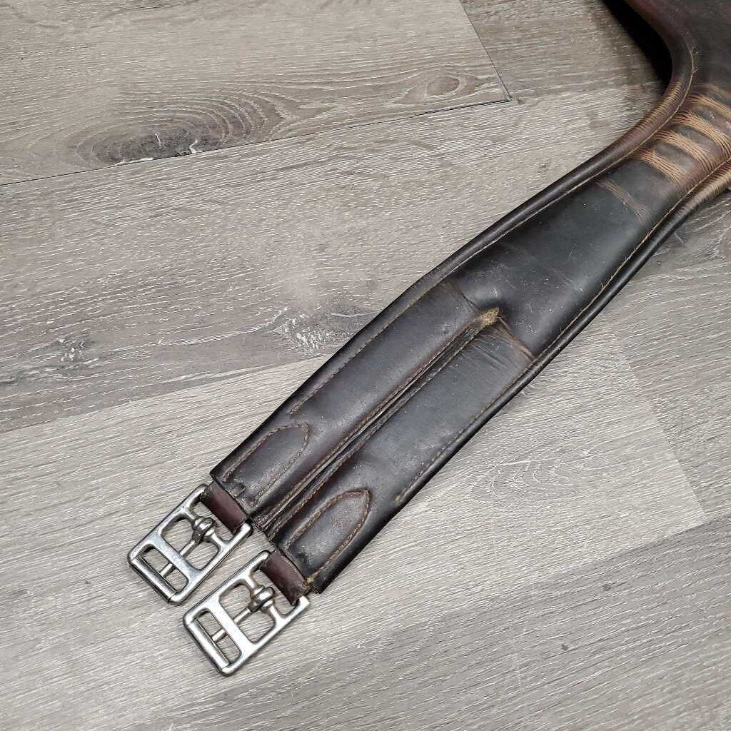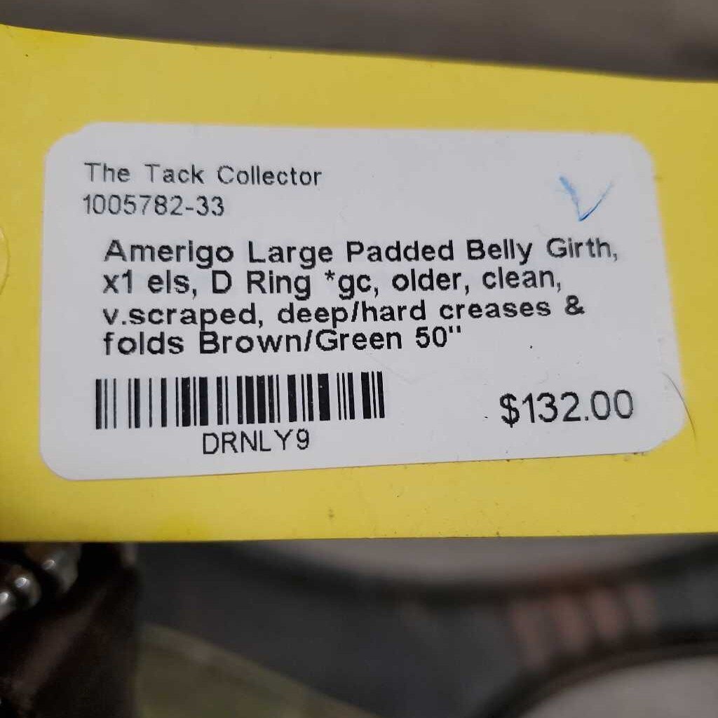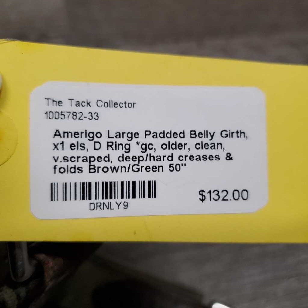 Large Padded Belly Girth, x1 els, D Ring *gc, older, clean, v.scraped, deep/hard creases & folds
