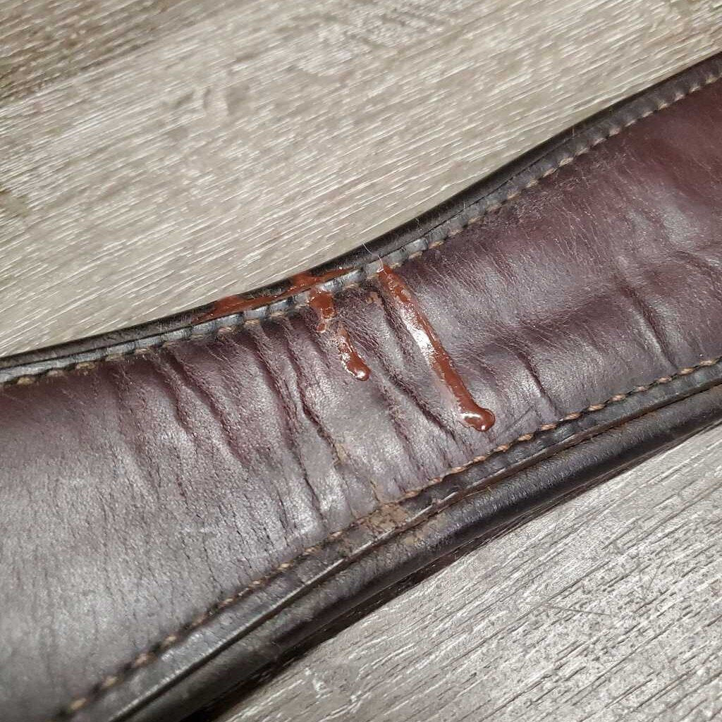 Leather Girth, 2x els *vgc, clean, mnr hair, dirt, scuffs, residue & paint?