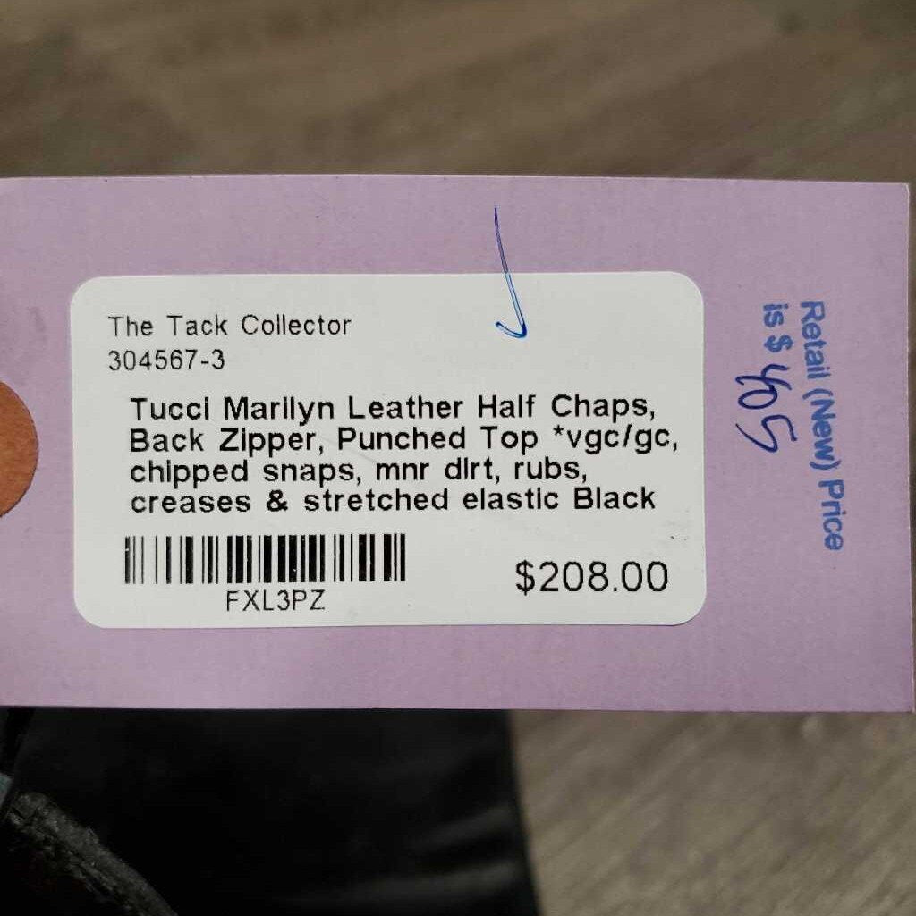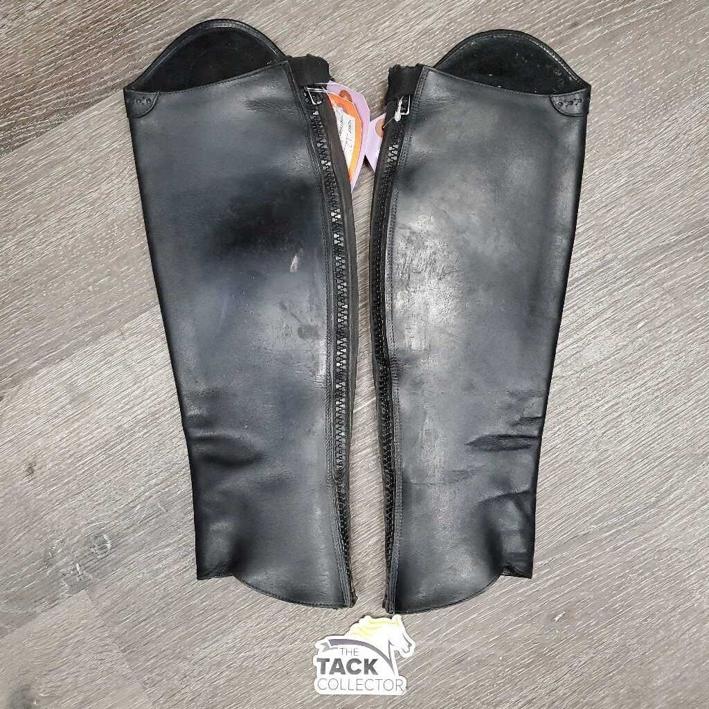 Leather Half Chaps, Back Zipper, Punched Top *vgc/gc, chipped snaps, mnr dirt, rubs, creases & stretched elastic