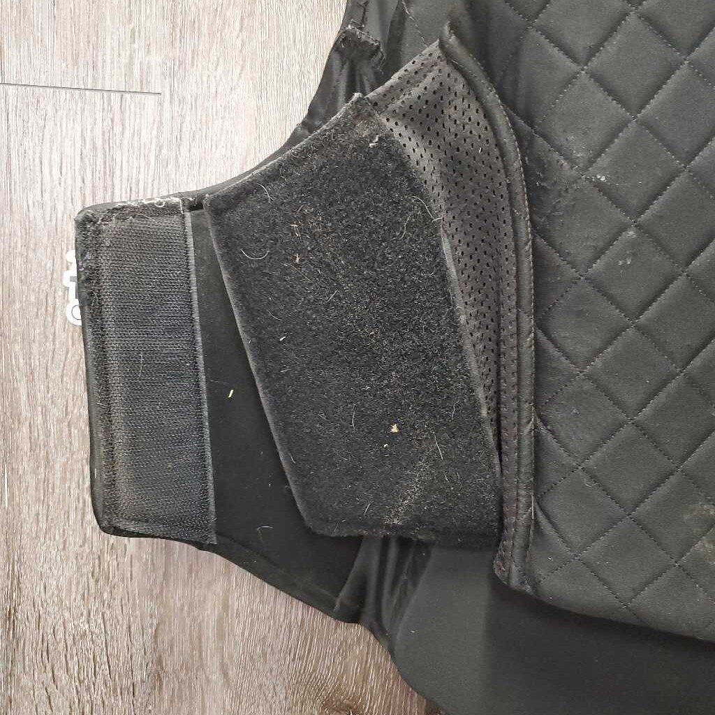 The Contour Flex Back Protector features a stylish quilted outer layer, offering a traditional equestrian look while the technical fabrics wick moisture, allow for airflow and offer supreme flexibility while in the saddle. Lightweight design offers a maximum range of motion and airflow 4 layers of padding offer coverage from the neck down to the base of the spine Thin layers of padding in the front panel keep the back protector lightweight and flexible Quilted fabric outer layer is breathable, moisture-wicking and easy to spot clean Adjustable hook-and-loop side panel
