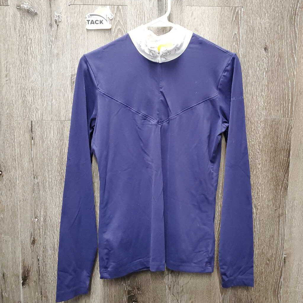 LS Hvy Shirt, 1/3 Zip Up, Bling *gc, puckered collar, missing bling, stains