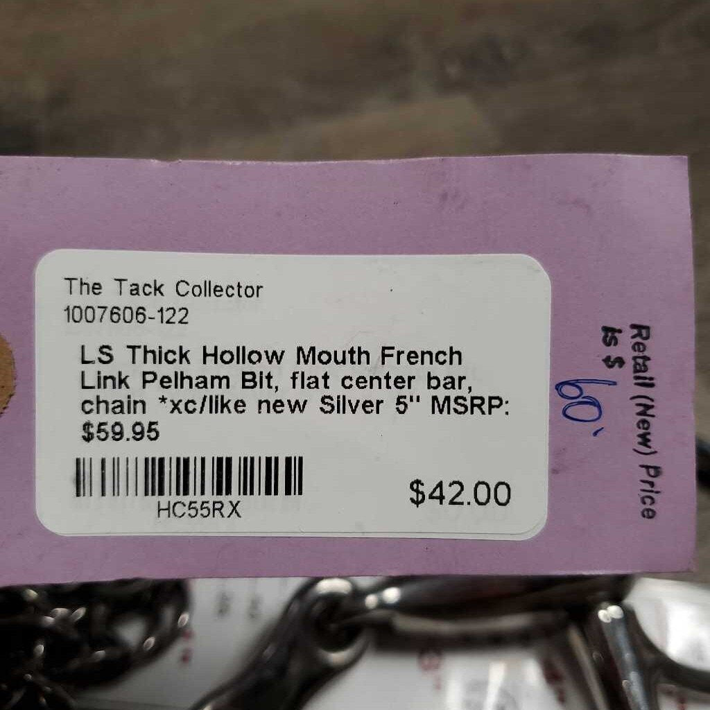 LS Thick Hollow Mouth French Link Pelham Bit, flat center bar, chain *xc/like new