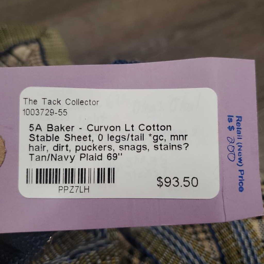 Lt Cotton Stable Sheet, 0 legs/tail *gc, mnr hair, dirt, puckers, snags, stains?