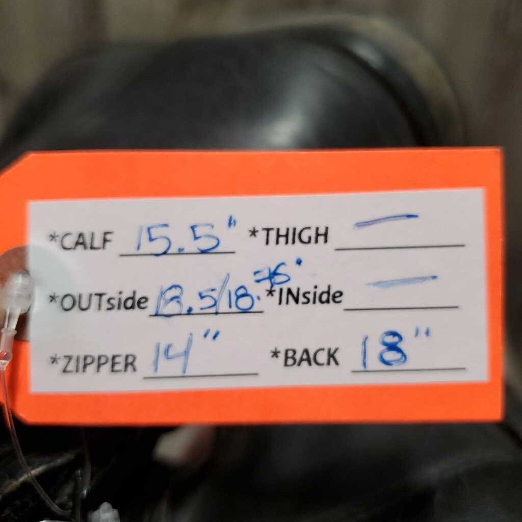 Calf: 15.5", Outside: 18.5/18.75", Zipper: 14", Back: 18"