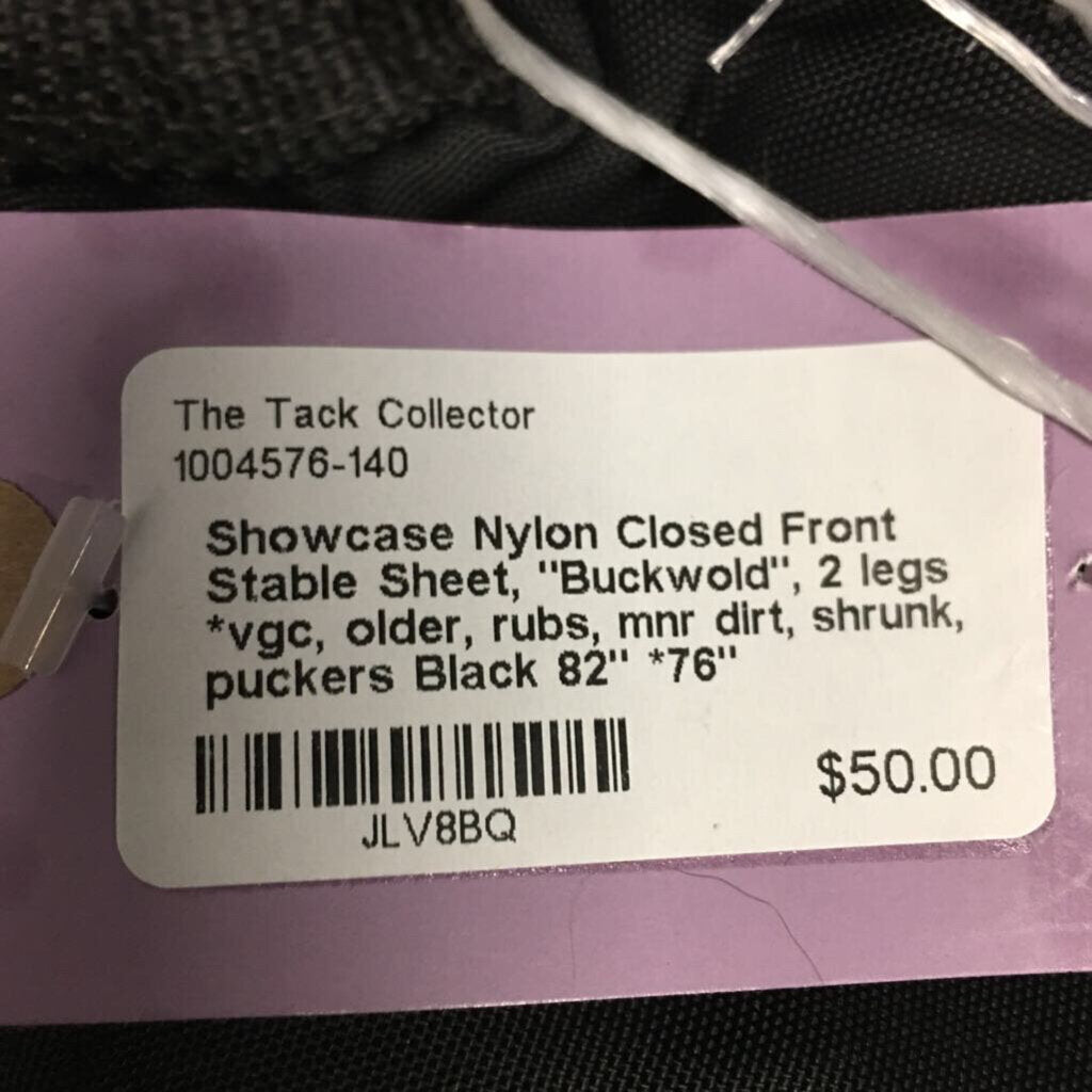 Nylon Closed Front Stable Sheet, "Buckwold", 2 legs *vgc, older, rubs, mnr dirt, shrunk, puckers