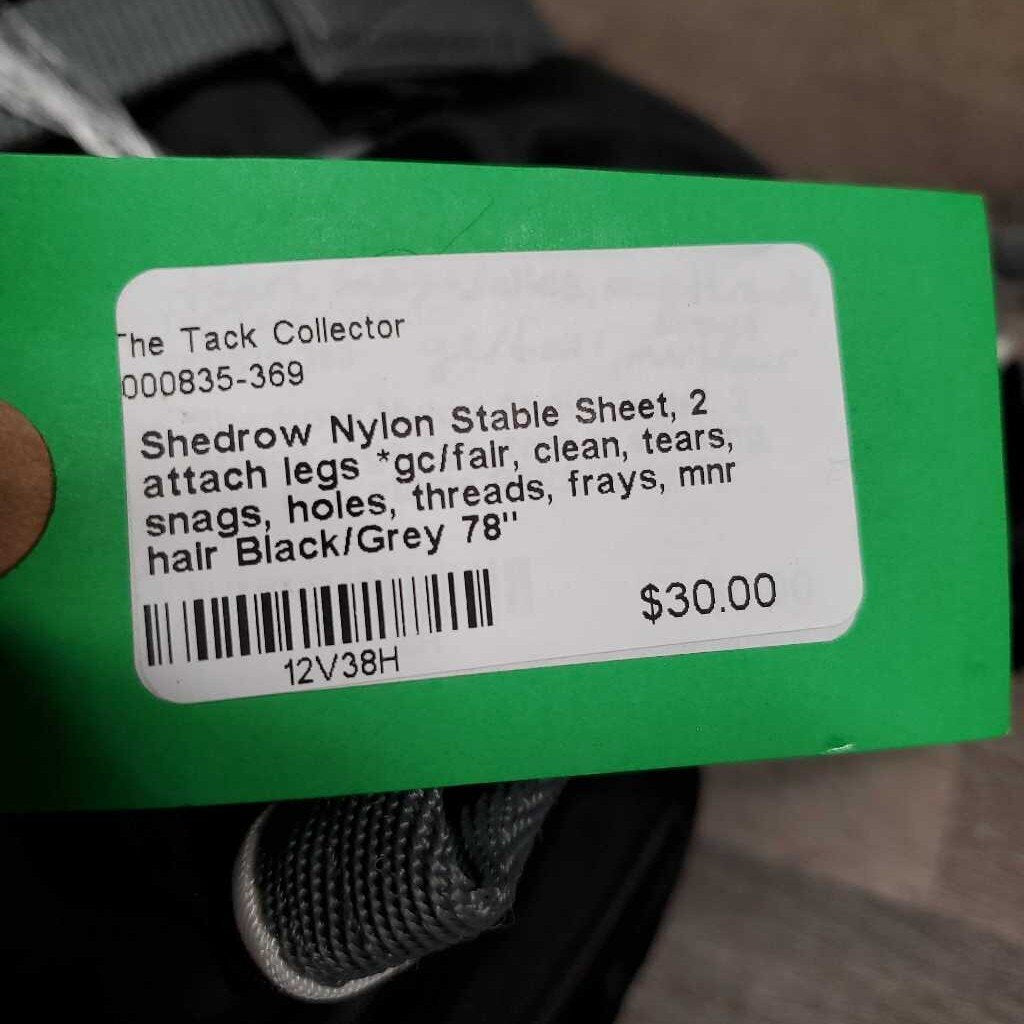 Nylon Stable Sheet, 2 attach legs *gc/fair, clean, tears, snags, holes, threads, frays, mnr hair
