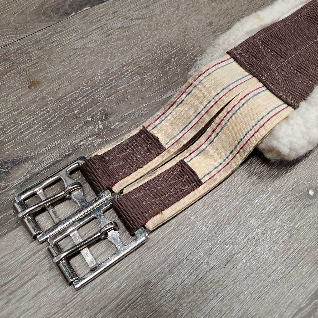 Nylon Web & Fleece Lined Girth, 2x els, D Ring *gc, dirty?stains, hairy, mnr edge rubs