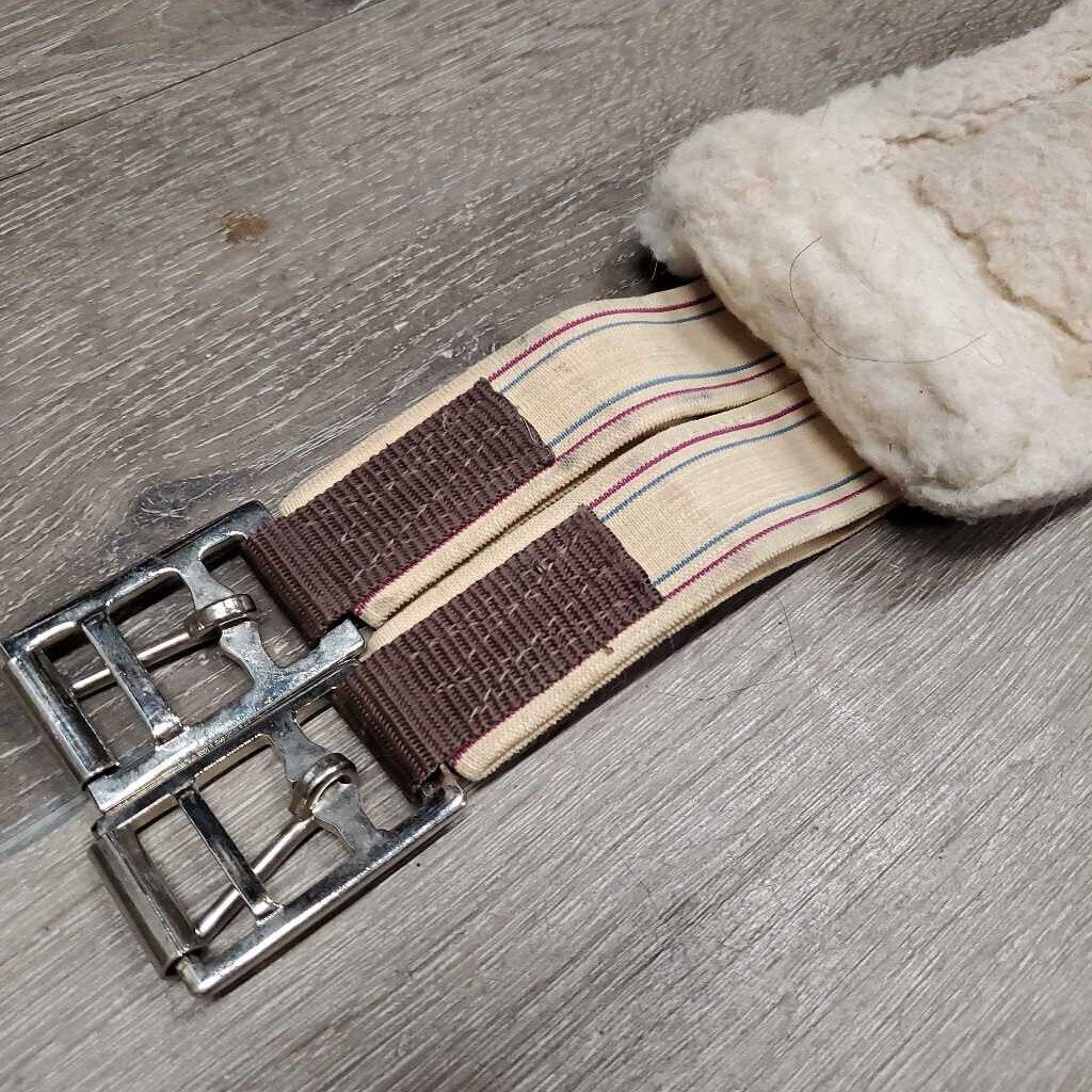 Nylon Web & Fleece Lined Girth, 2x els, D Ring *gc, dirty?stains, hairy, mnr edge rubs SALE