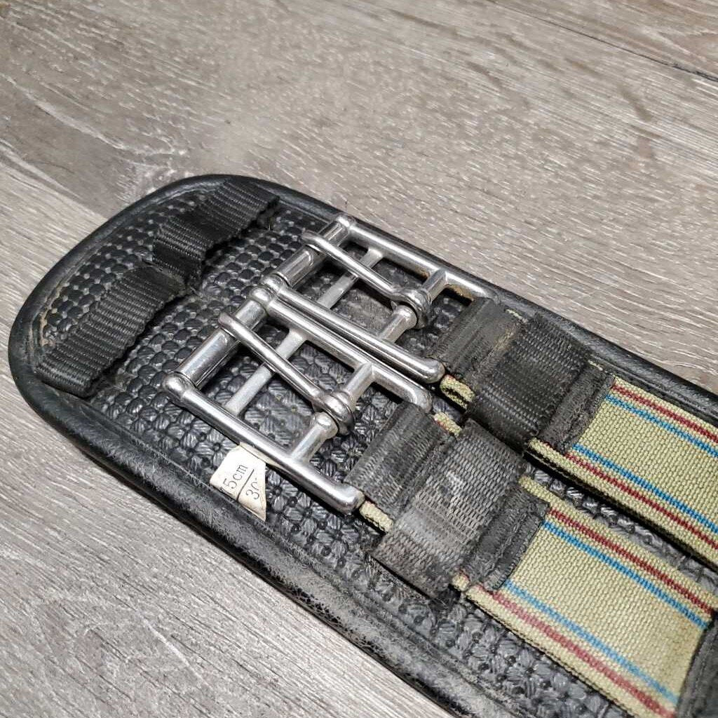 Nylon Web & Neoprene Dressage - Short Girth, 2x els *gc, clean, dirty & hairy seams, creases, faded, rubs