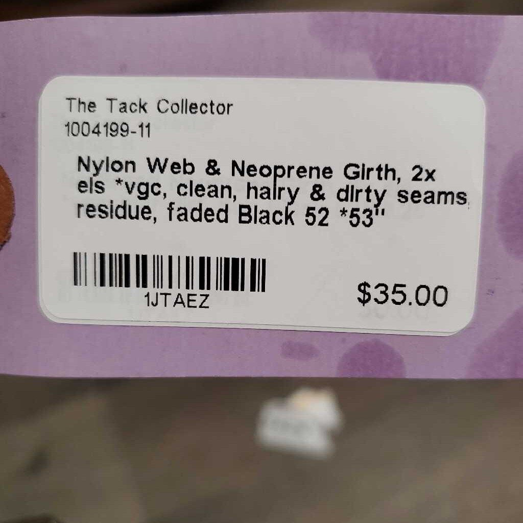 Nylon Web & Neoprene Girth, 2x els *vgc, clean, hairy & dirty seams, residue, faded