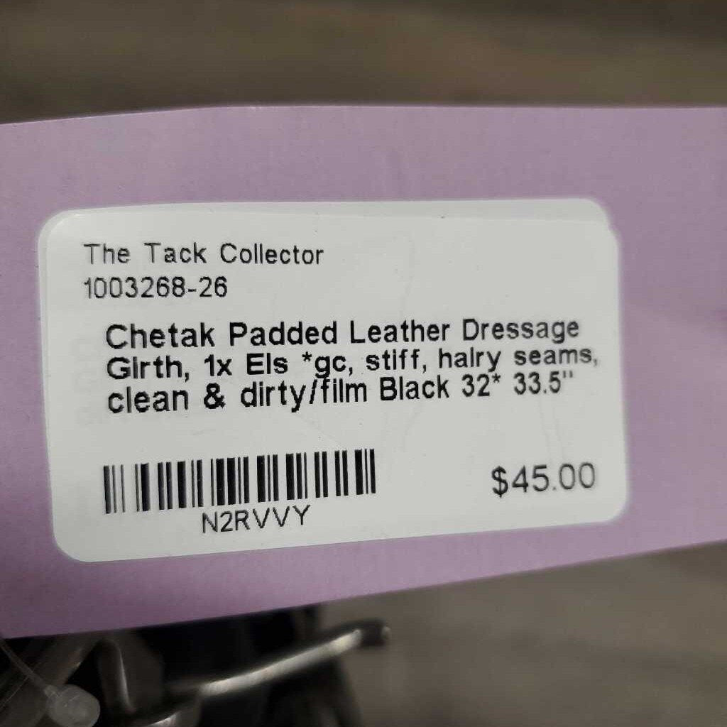 Padded Leather Dressage - Short Girth, 1x Els *gc, stiff, hairy seams, clean & dirty/film
