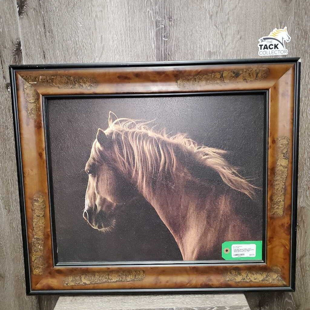 Palomino Horse Photo - Print, Wood Frame *vgc, chipped corner, scratches