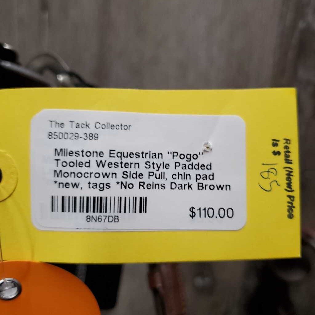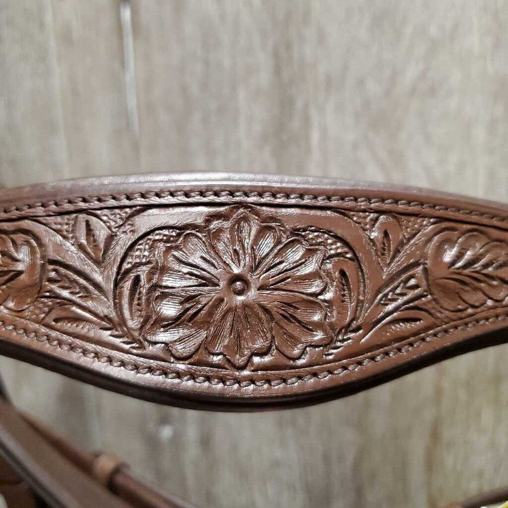 "Pogo" Tooled Western Style Padded Monocrown Side Pull, chin pad *new, tags *No Reins