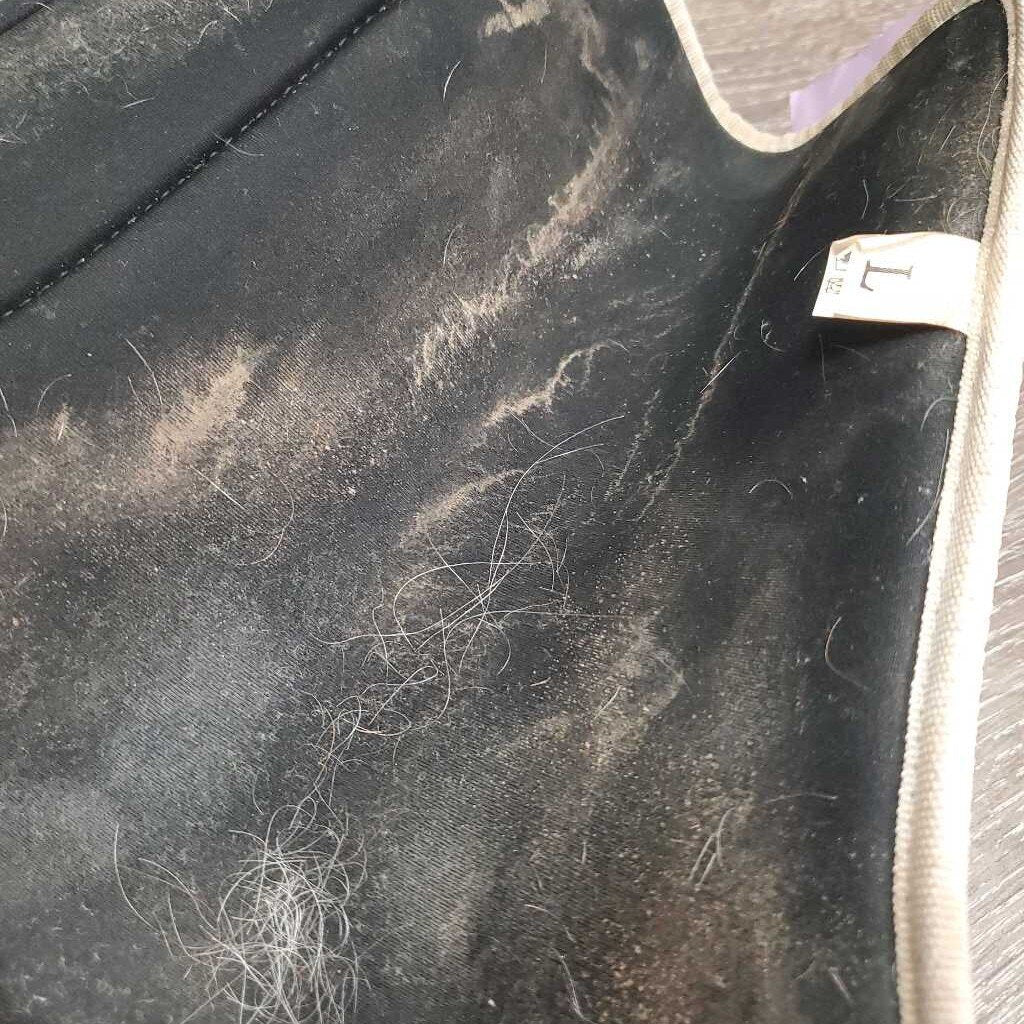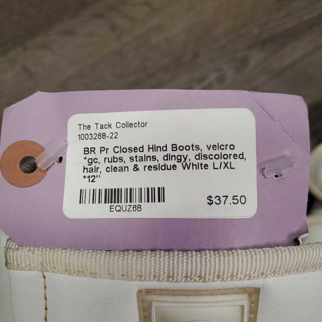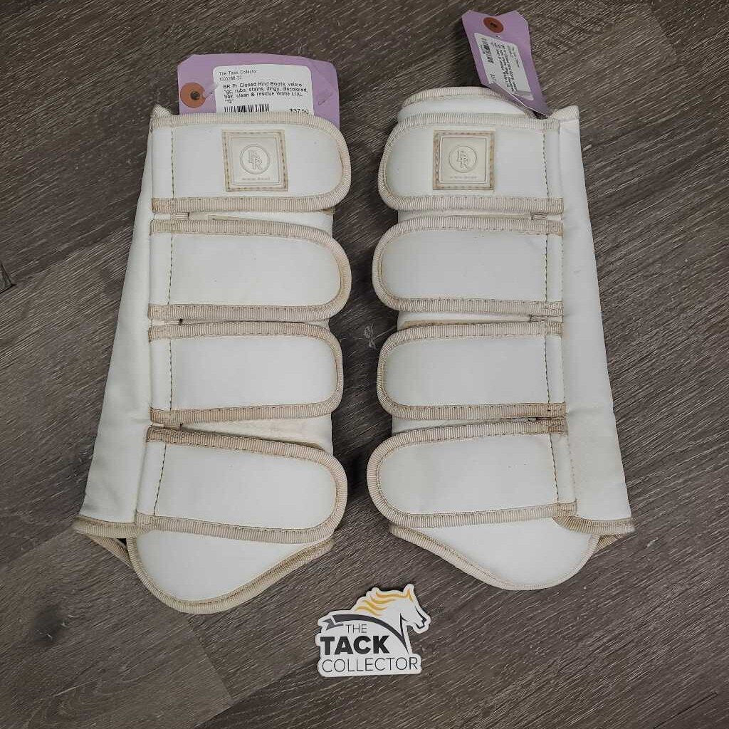 Pr Closed Hind Boots, velcro *gc, rubs, stains, dingy, discolored, hair, clean & residue