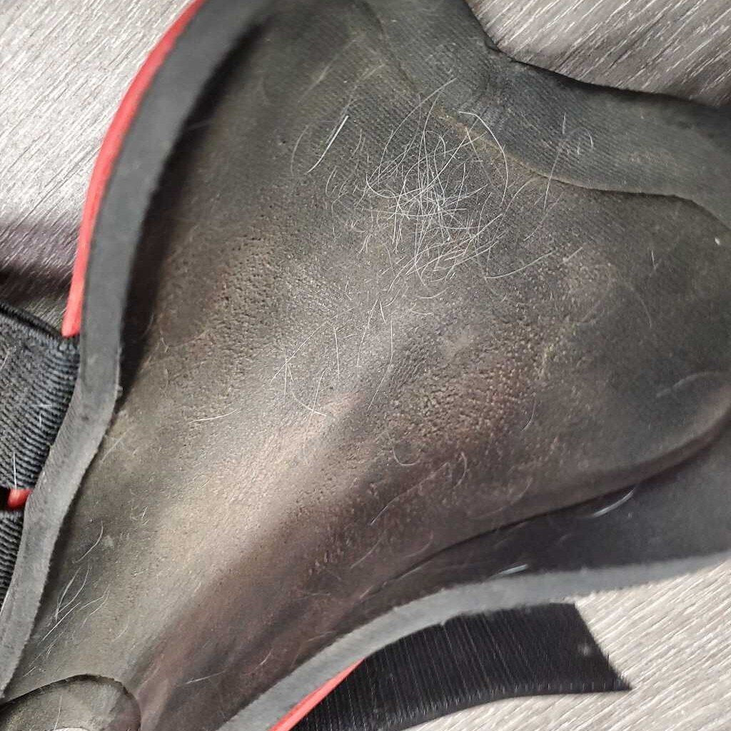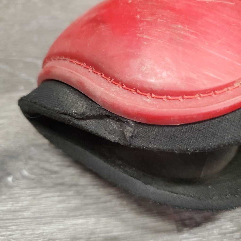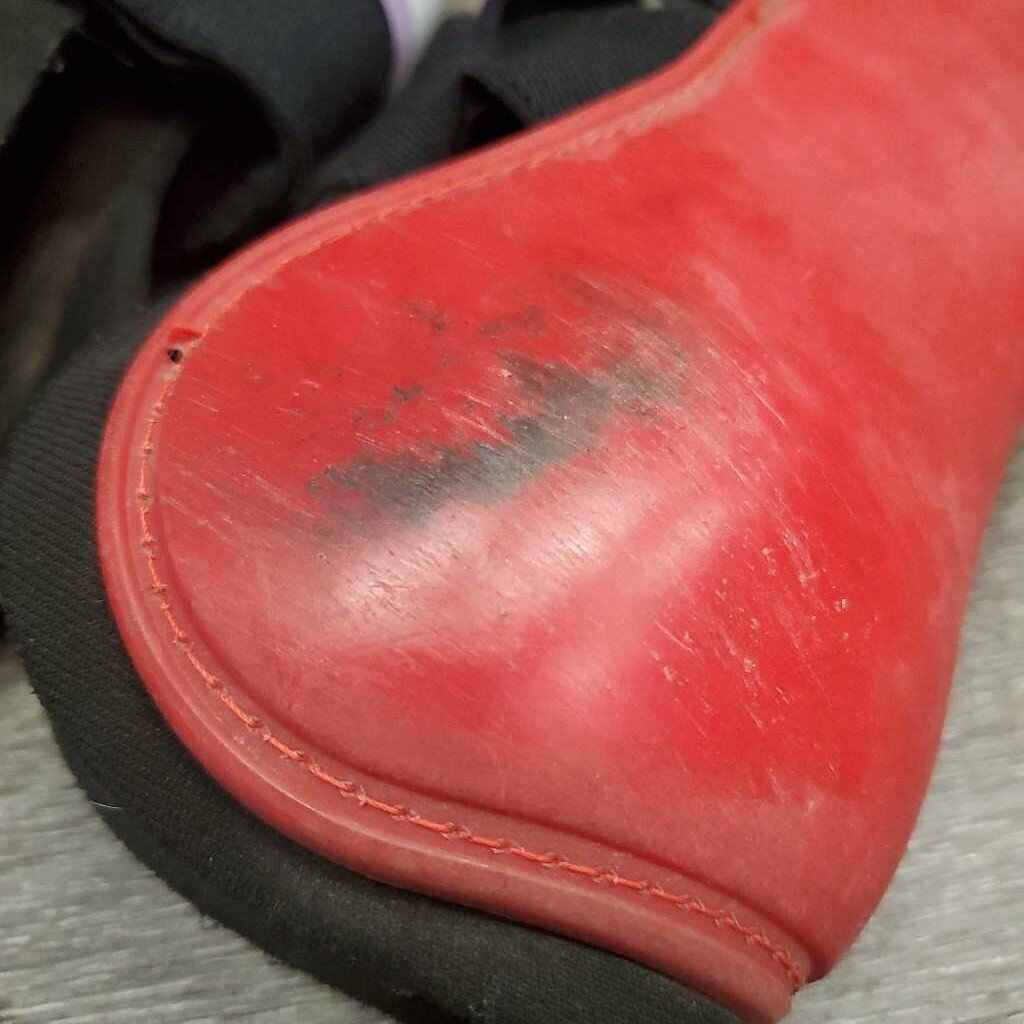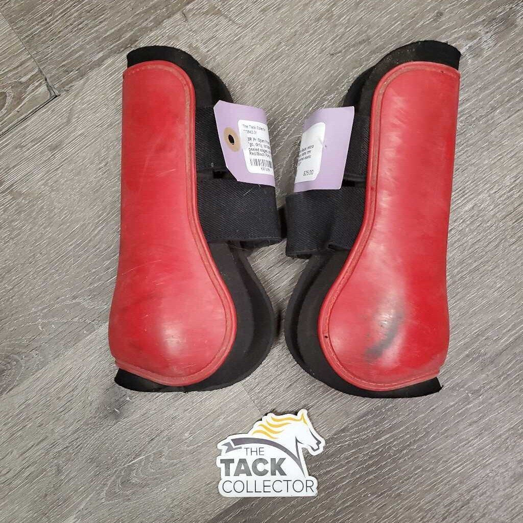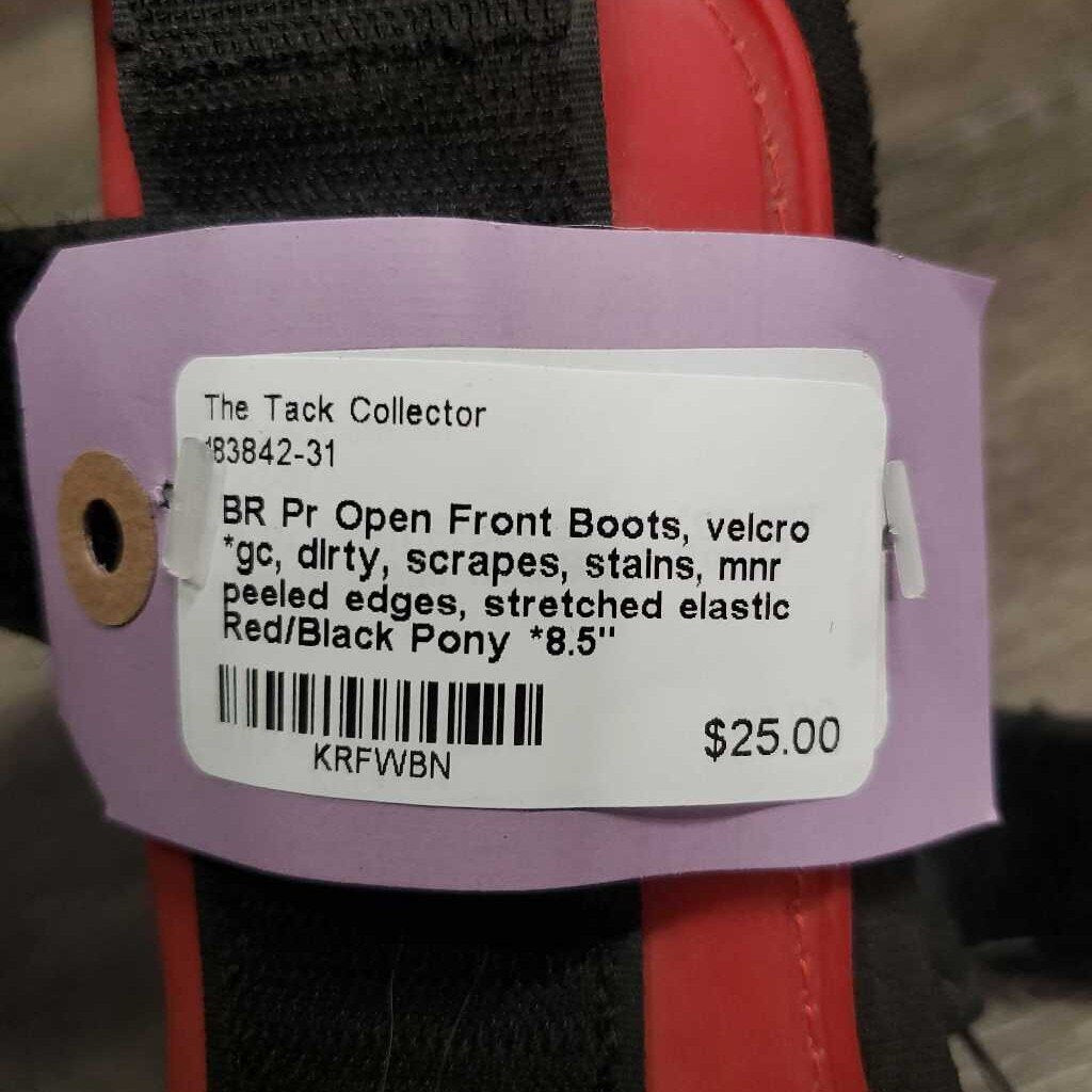 Pr Open Front Boots, velcro *gc, dirty, scrapes, stains, mnr peeled edges, stretched elastic