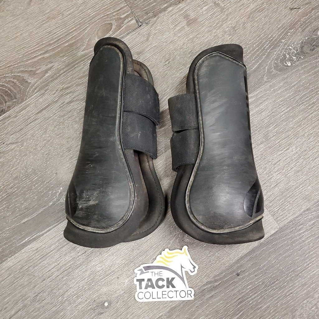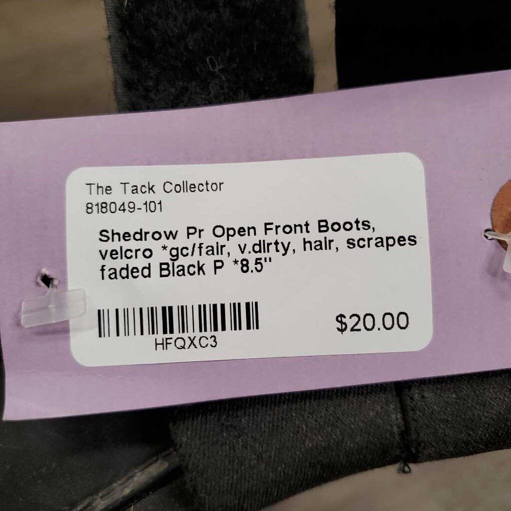 Pr Open Front Boots, velcro *gc/fair, v.dirty, hair, scrapes, faded