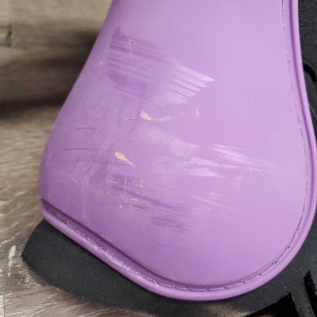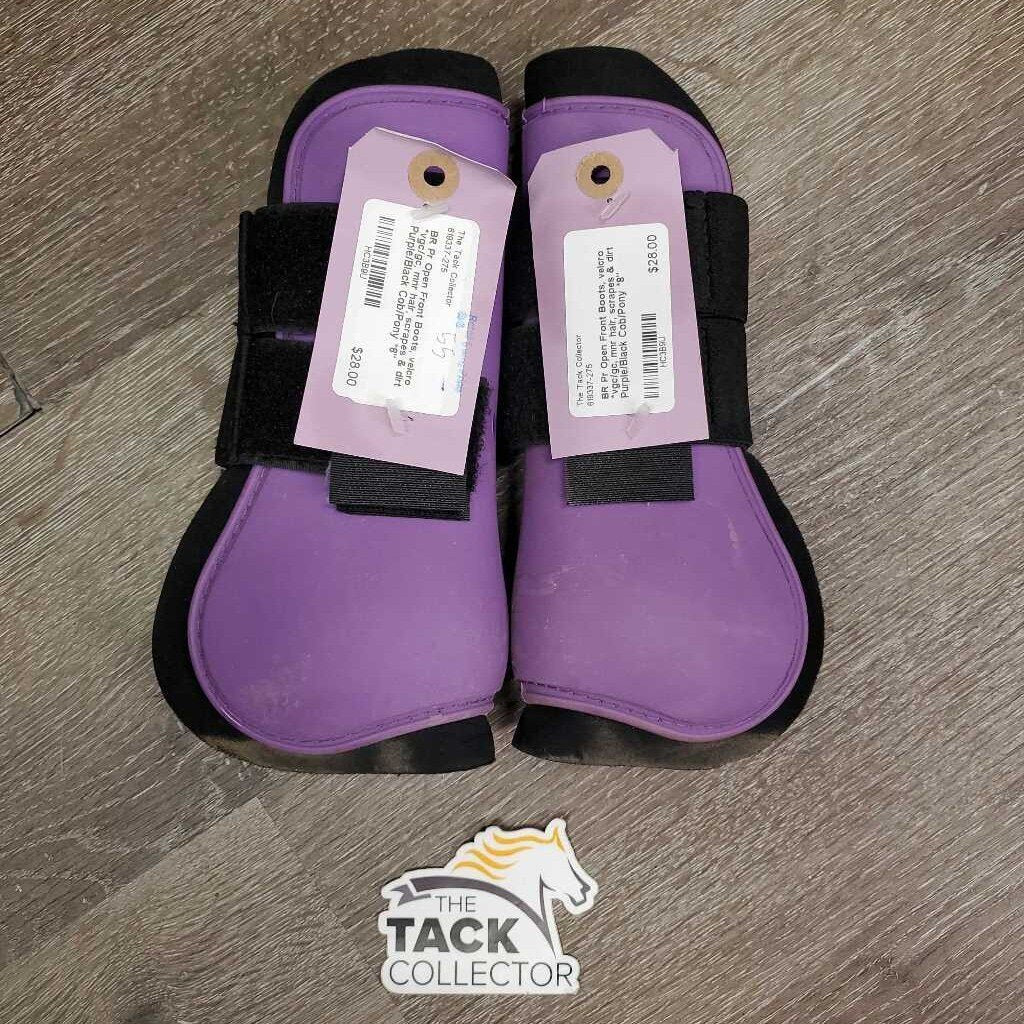 Pr Open Front Boots, velcro *vgc/gc, mnr hair, scrapes & dirt