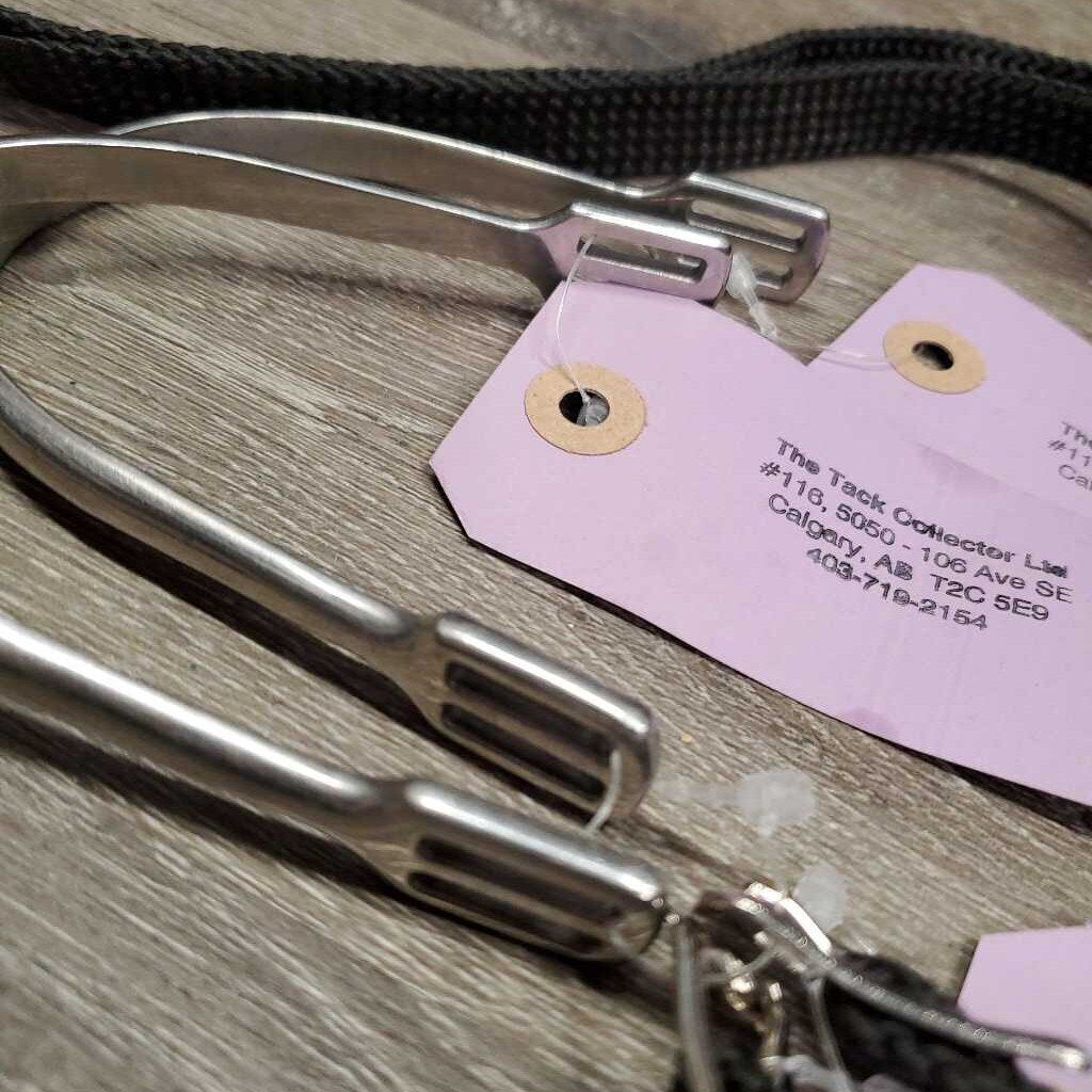 Pr POW Spurs, Soft Braided Nylon Straps *vgc, clean, rubs & scratches *Straps: like new