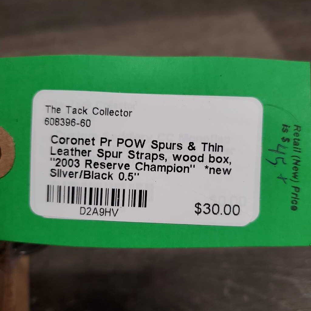 Pr POW Spurs & Thin Leather Spur Straps, wood box, "2003 Reserve Champion" *new