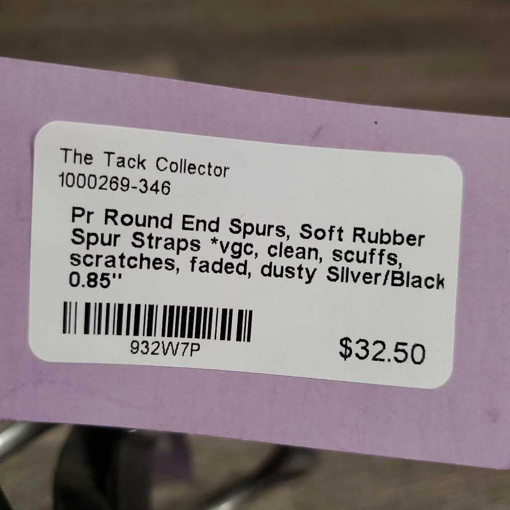 Pr Round End Spurs, Soft Rubber Spur Straps *vgc, clean, scuffs, scratches, faded, dusty