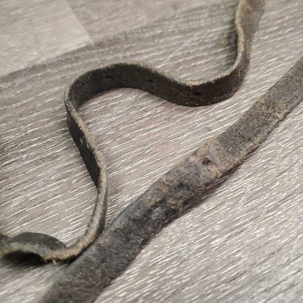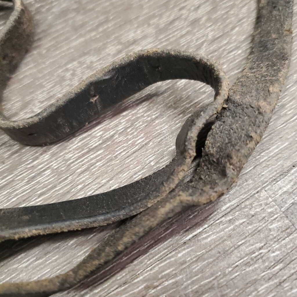 Pr Wide Leather Spur Straps *gc, clean, residue, twists, stretched & extra? holes, creases, older