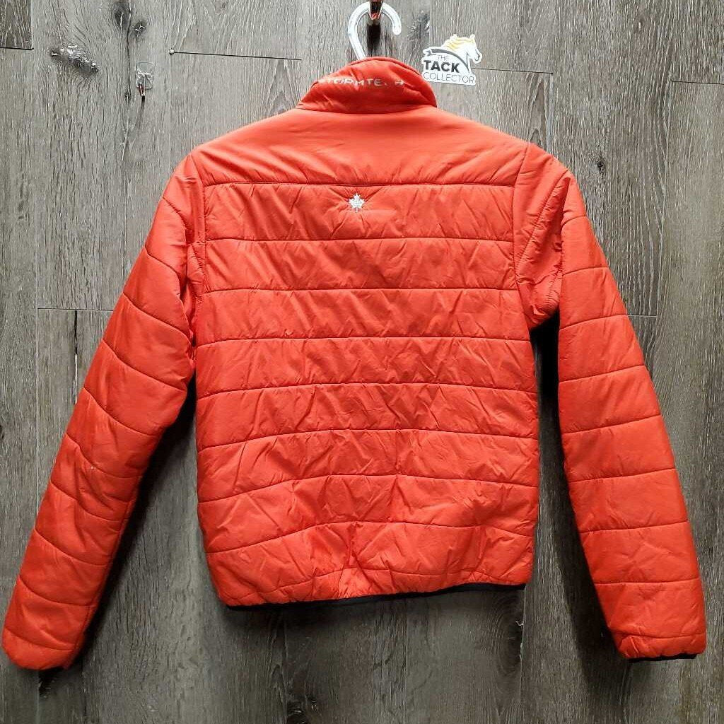 Quilt Puffy Jacket, Zipper"Spruce Meadows, Canada" embroidery *vgc, mnr cuff stains