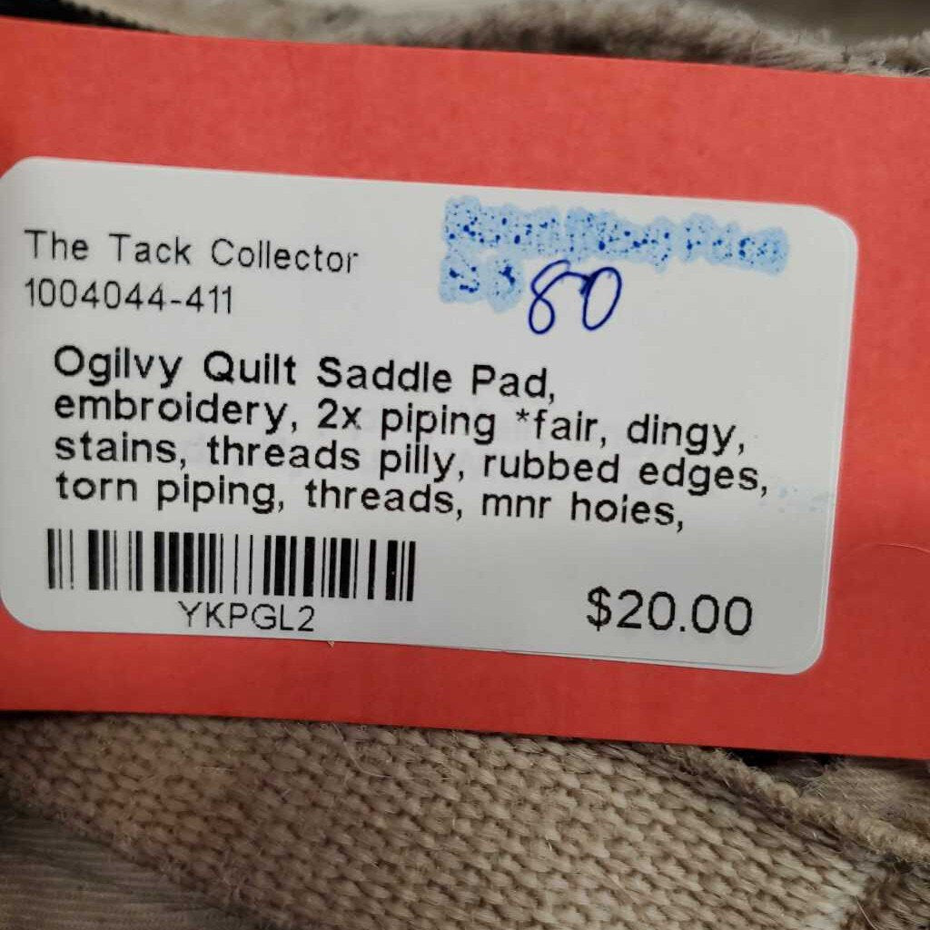 Quilt Saddle Pad, embroidery, 2x piping *fair, dingy, stains, threads pilly, rubbed edges, torn piping, threads, mnr holes SALE