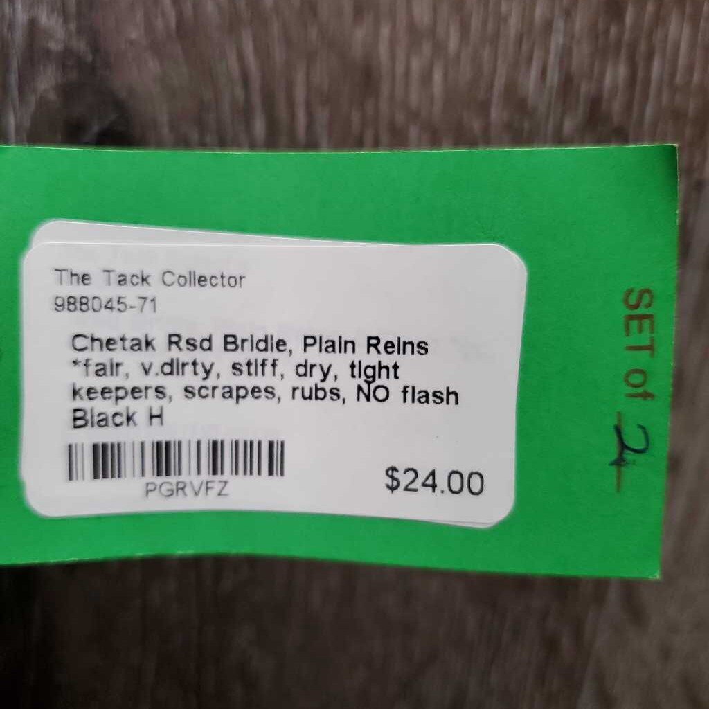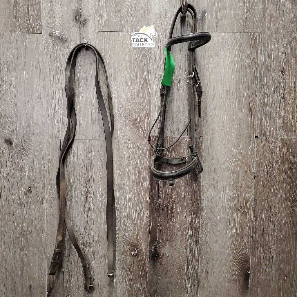 Rsd Bridle, Plain Reins *fair, v.dirty, stiff, dry, tight keepers, scrapes, rubs, NO flash