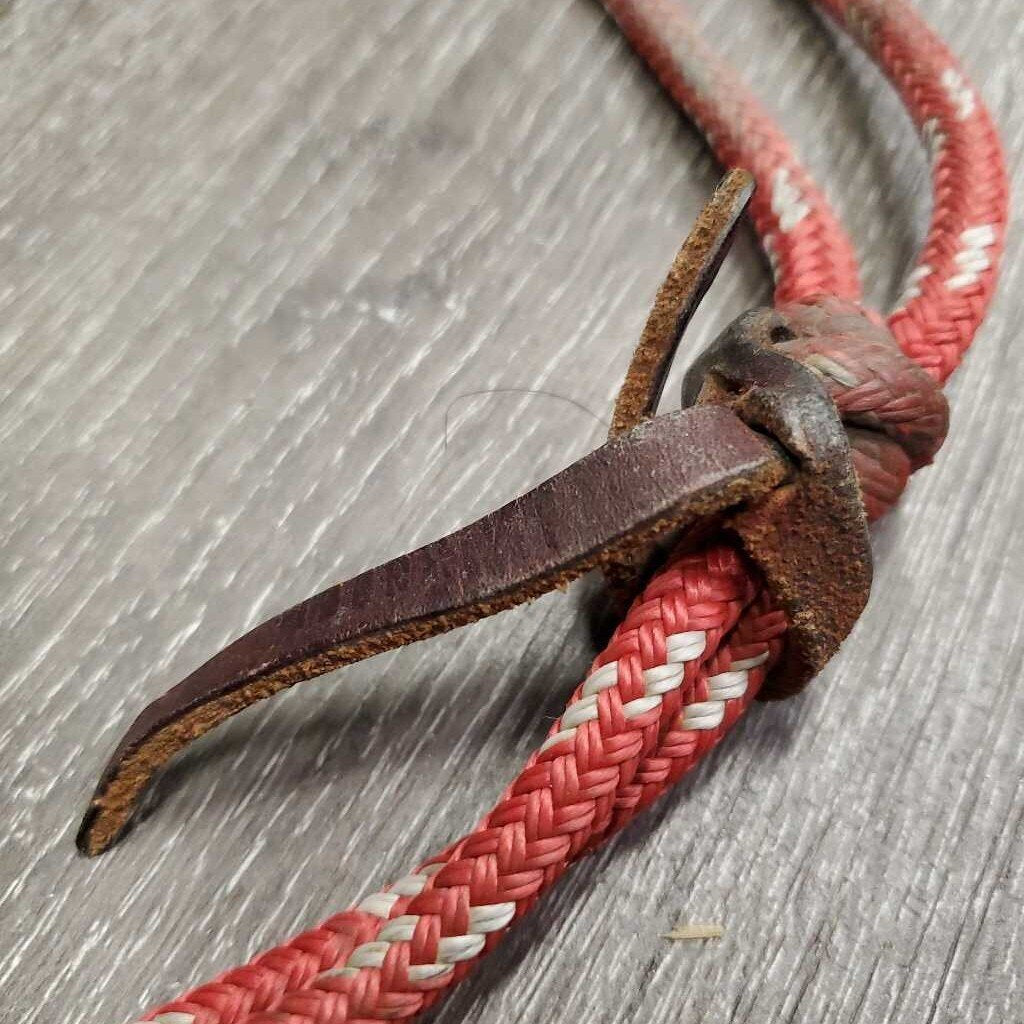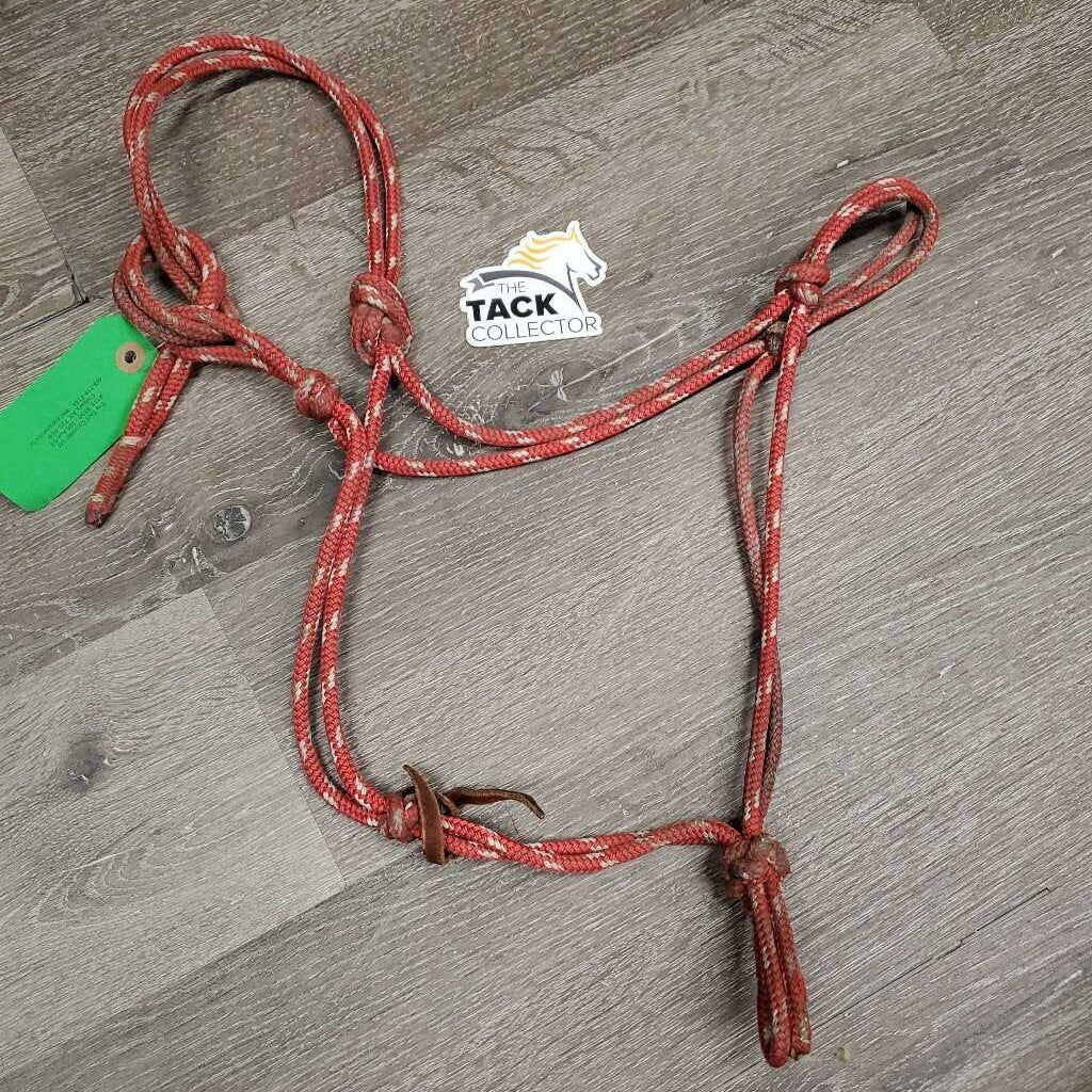 Soft Nylon Rope Halter, leather tassel *gc, stained, mnr dirt, cut, threads, frays, residue