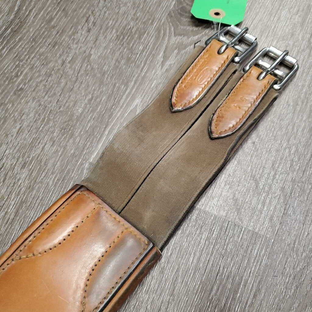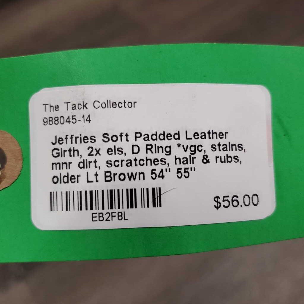 Soft Padded Leather Girth, 2x els, D Ring *vgc, stains, mnr dirt, scratches, hair & rubs, older