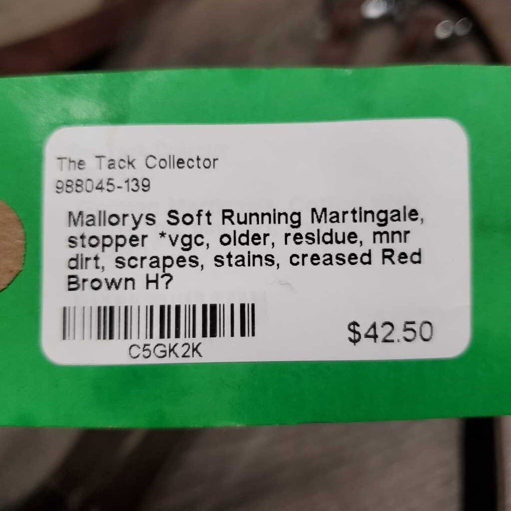 Soft Running Martingale, stopper *vgc, older, residue, mnr dirt, scrapes, stains, creased