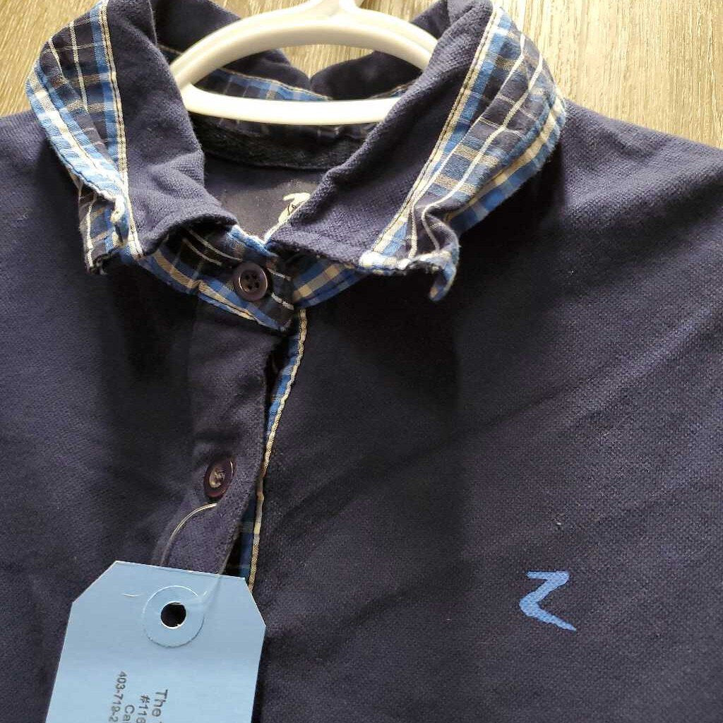 SS Cotton Polo Shirt. 1/4 Button Up *gc, older, mnr hair, v.curled/folded collar