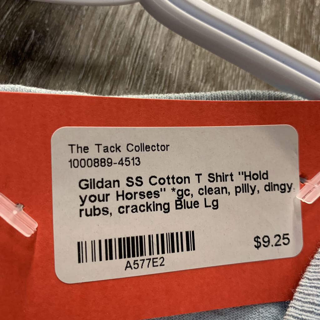 SS Cotton T Shirt "Hold your Horses" *gc, clean, pilly, dingy, rubs, cracking