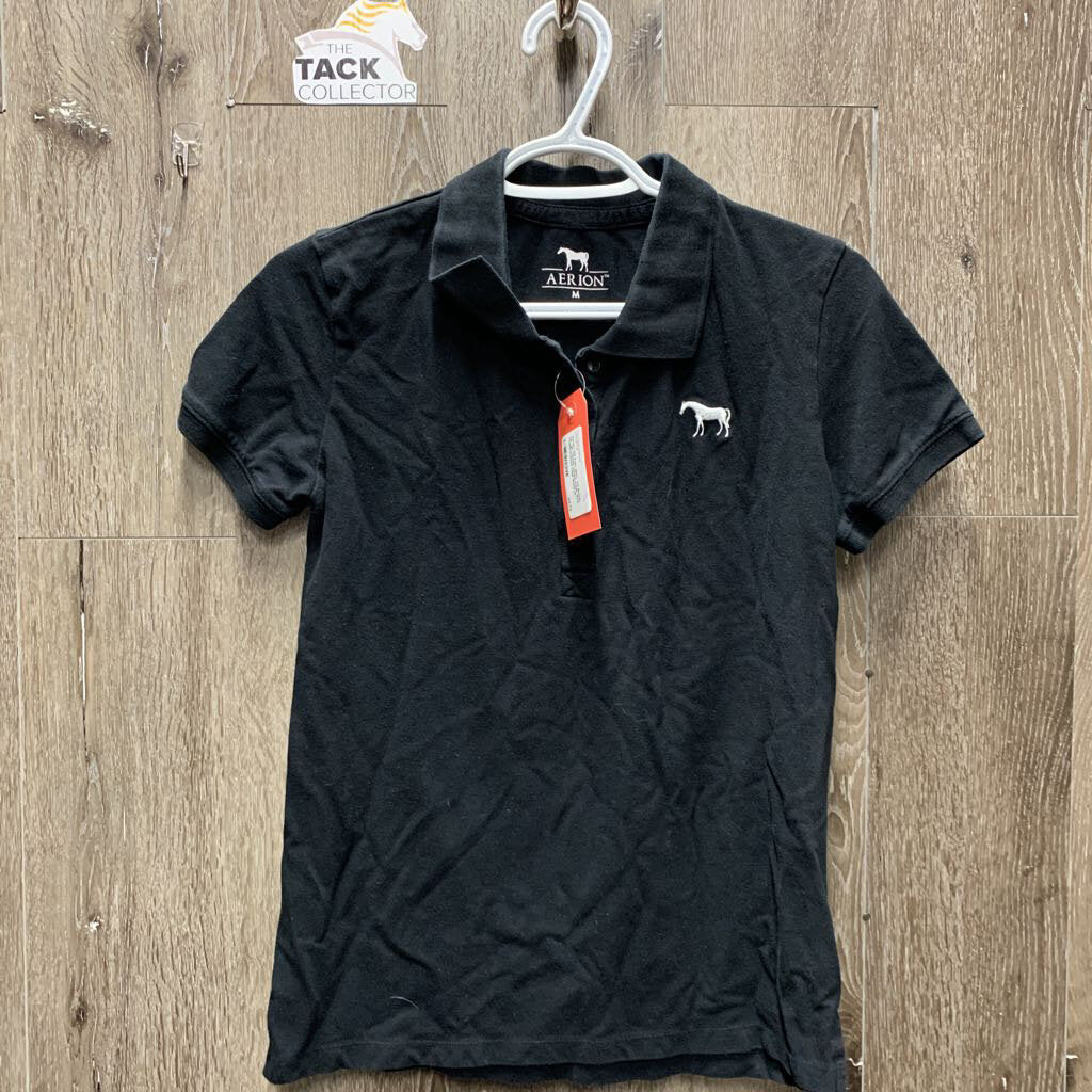 SS Polo Shirt, 1/3 Button Up *gc, faded, curled collar, linty, faded/stained edge SALE