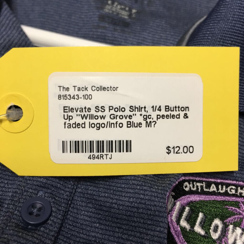 SS Polo Shirt, 1/4 Button Up "Willow Grove" *gc, peeled & faded logo/info SALE